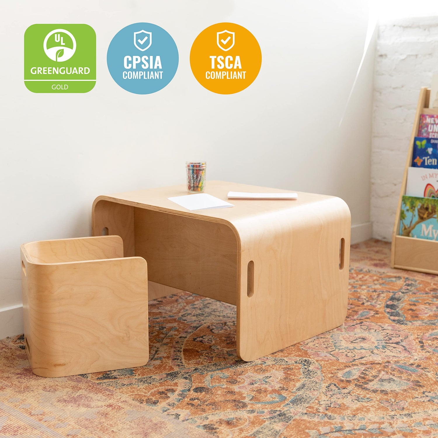 - Certified Safe: The wood furniture set is GREENGUARD [GOLD] Certified for low VOCs, CPSIA compliant; rounded edges for safety