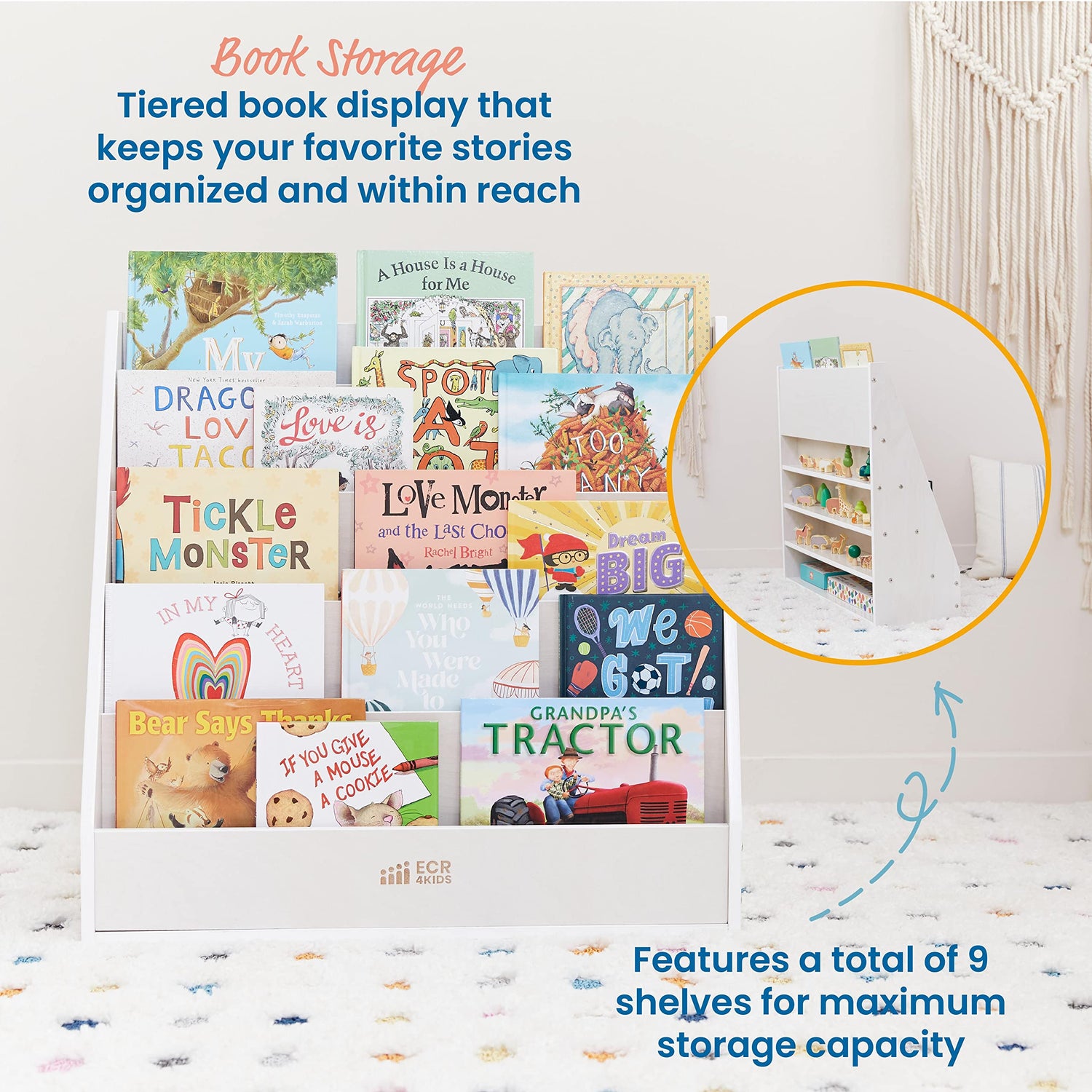 - Early Reading: The forward-facing bookcase is just the right size to let children see the cover of each book, prompting them to pick up a story and read; shelves on the back provide additional storage