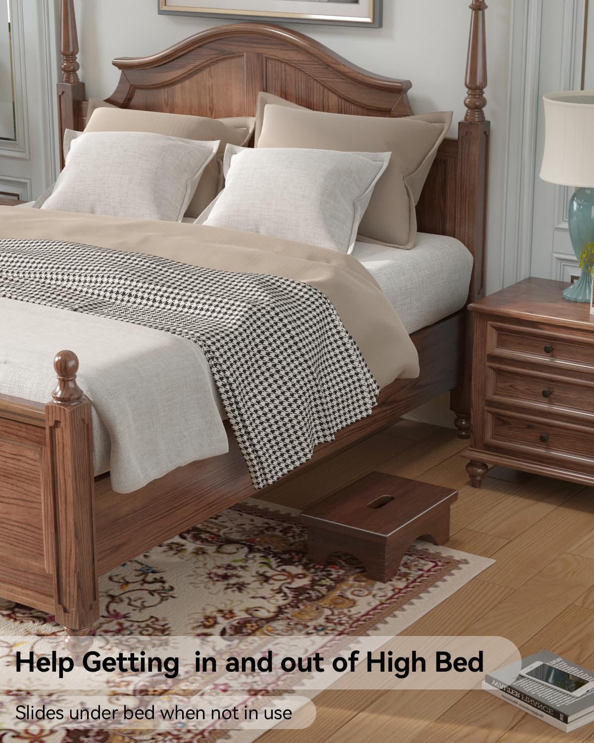 ECROCY Step Stools for Adults Pre-Assembled, Sturdy Foot Stool Lightweight, Portable Wood Step Stool Attractive, Solid Wooden Step Stool with Smooth Finish, Bed Steps for High Beds for Adults