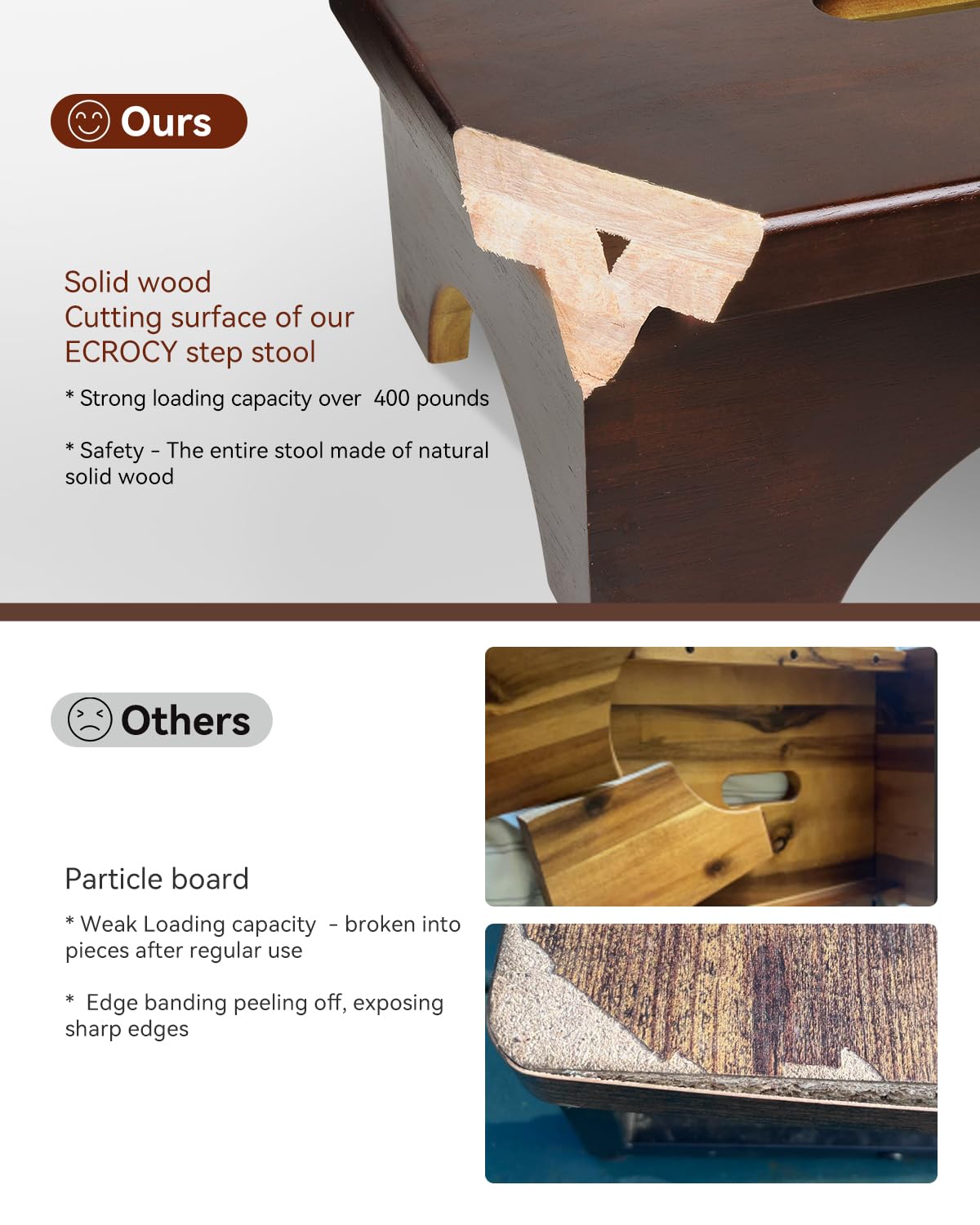 - Sturdy and Reliable: ECROCY step stool comes with 400 pounds capacity, providing strong support for adults, kids, elderly, and seniors to stand on. Our wood step stool for adults arrives fully assembled, rceive and use immediately!