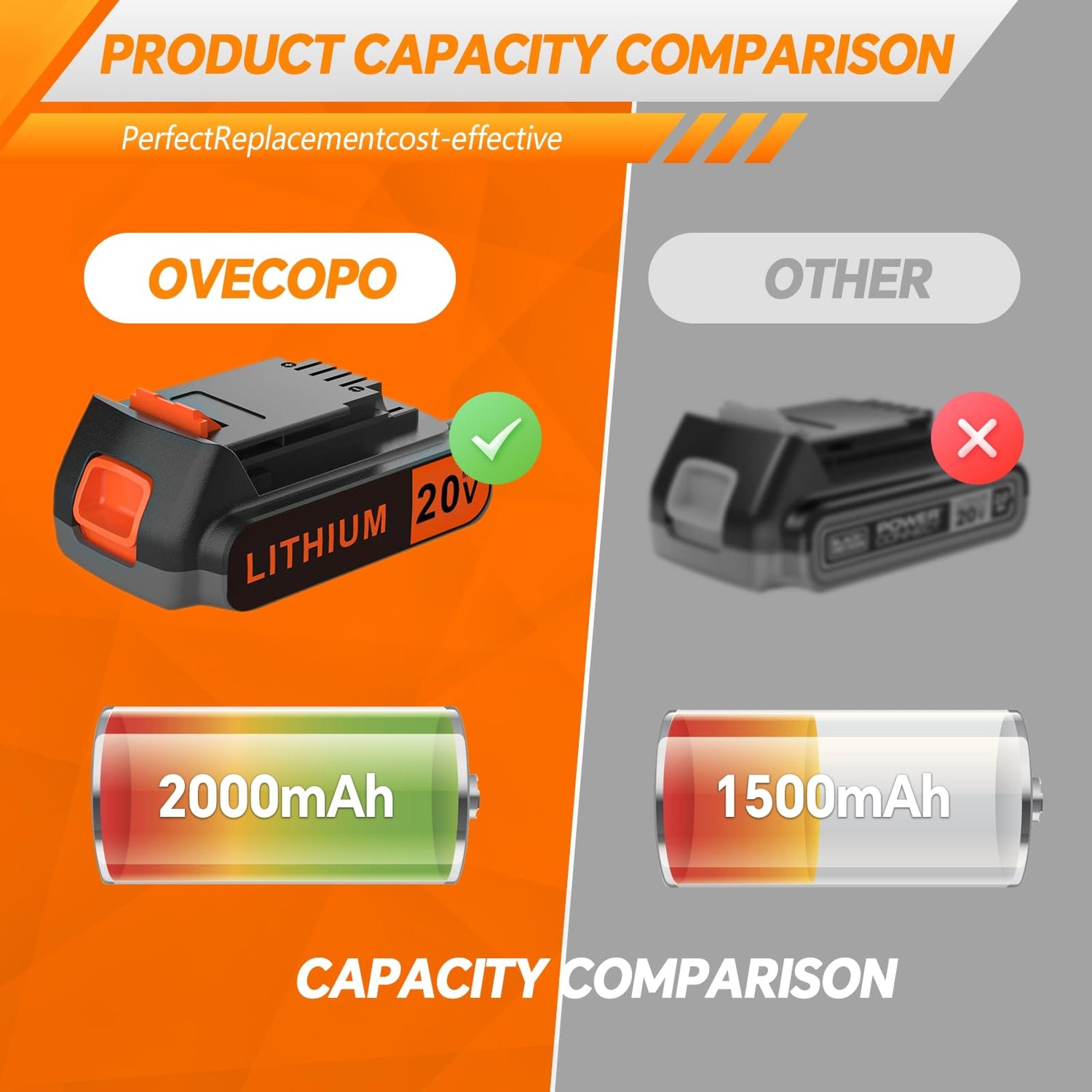 EDETOVAD 20 Volt MAX 2.0AH Lithium-Ion Battery Replacement for Black+Decker 20V Battery,Compatible with All Power 20V Black and Decker Power+ Tools