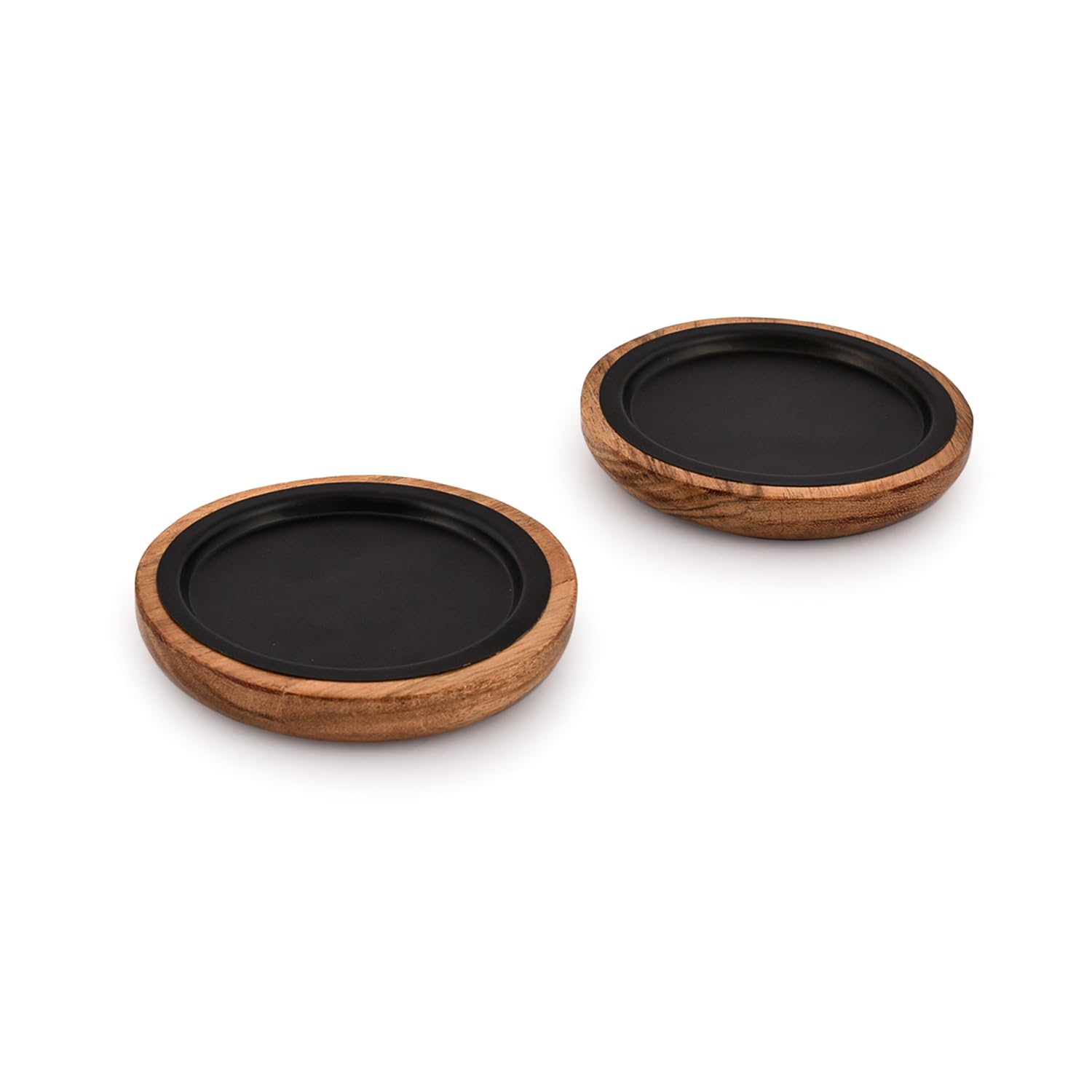 EDHAS Candlestick Holders Acacia Wood Set of 2 Wooden Candle Holder Plate Base for Living Room Coffee Table Centerpiece for Kitchen (4" X 4" X 0.75")