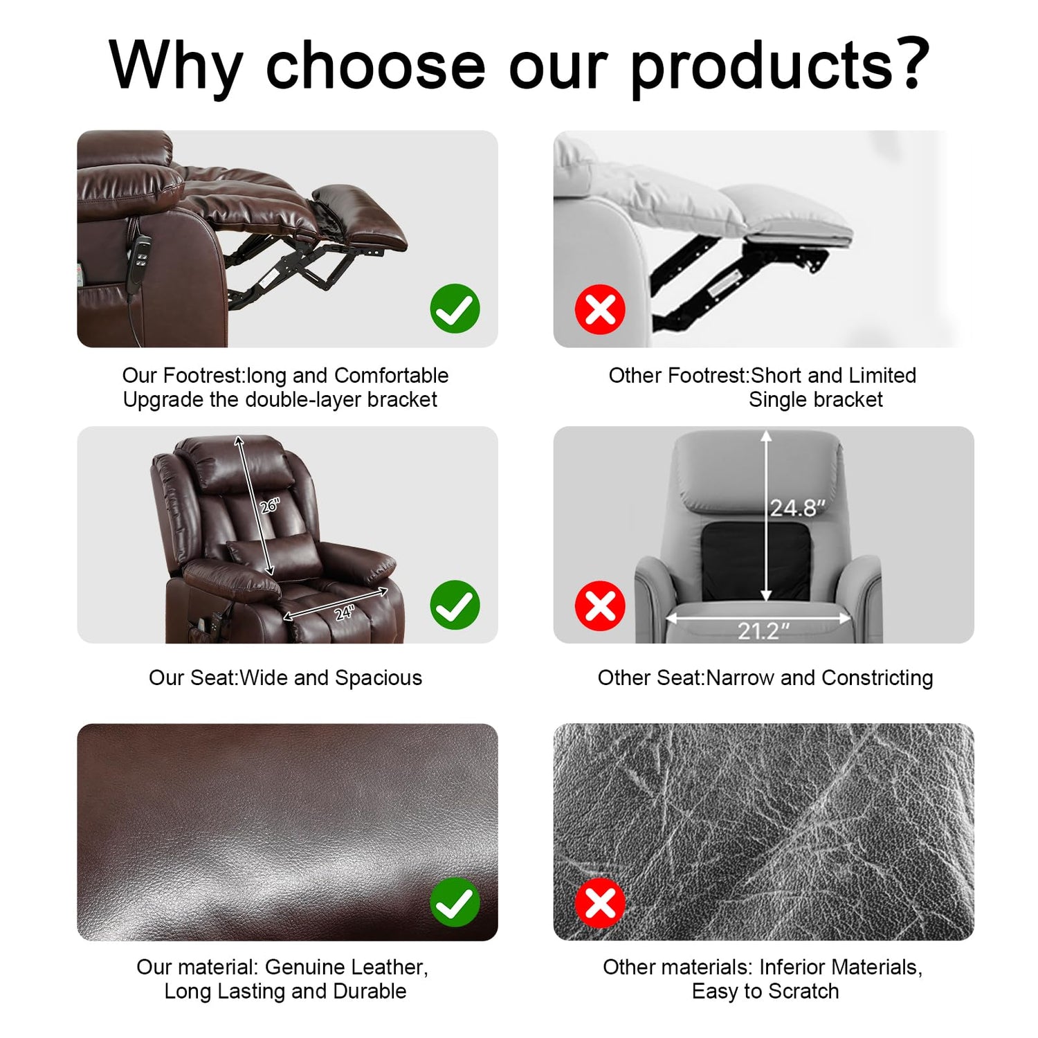 - 【Genuine Leather Surface】This electric lift recliner is made of genuine leather contact surface to provide a more comfortable contact feeling, thick cushion with high-density sponge cushion, strong support, high comfort, with a strong steel frame structure, solid and durable.