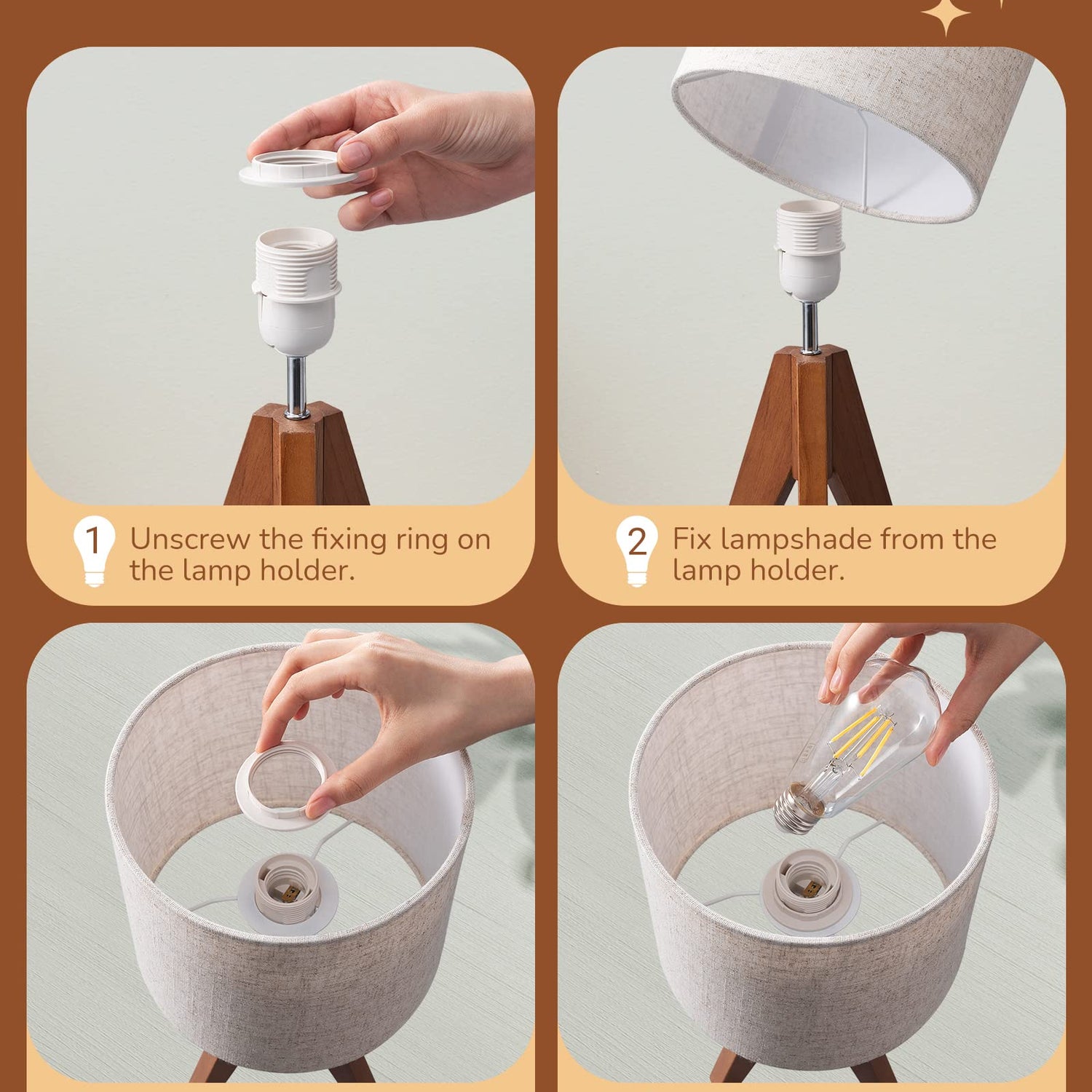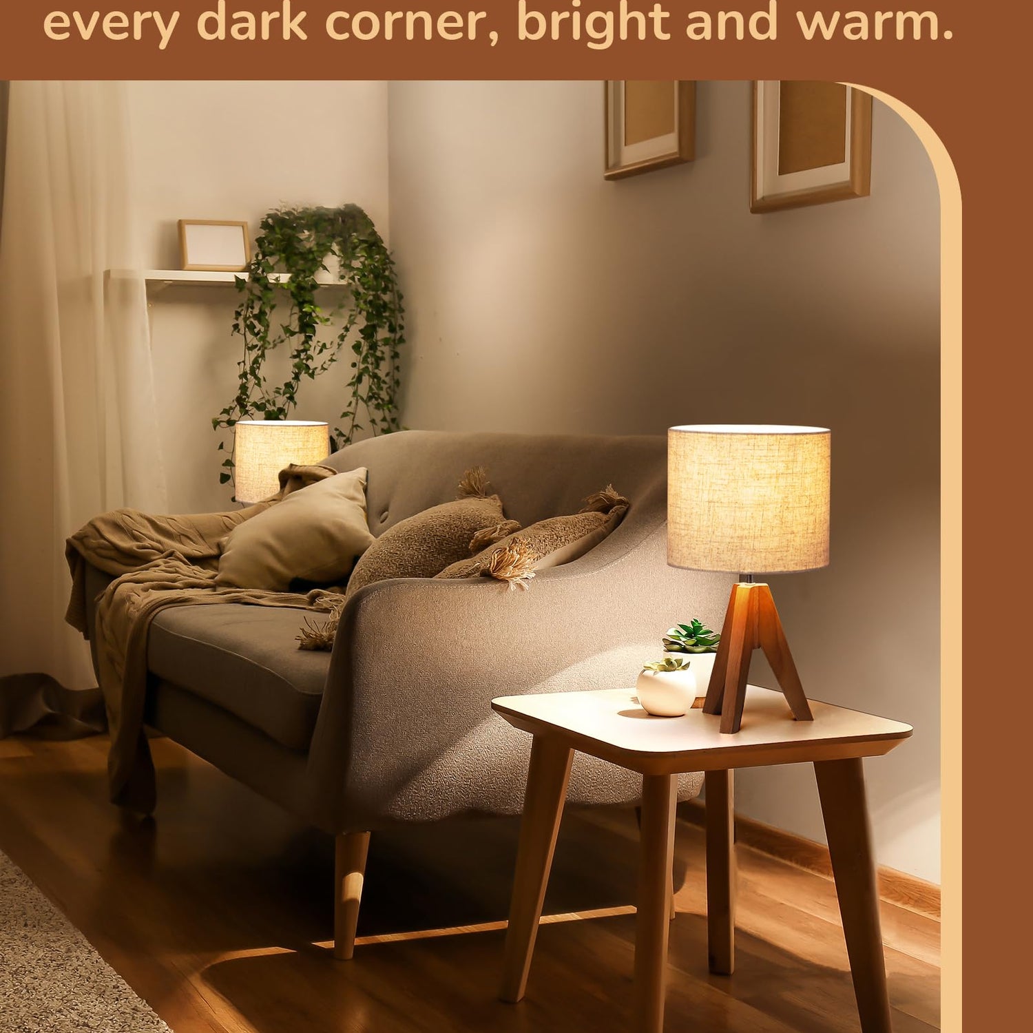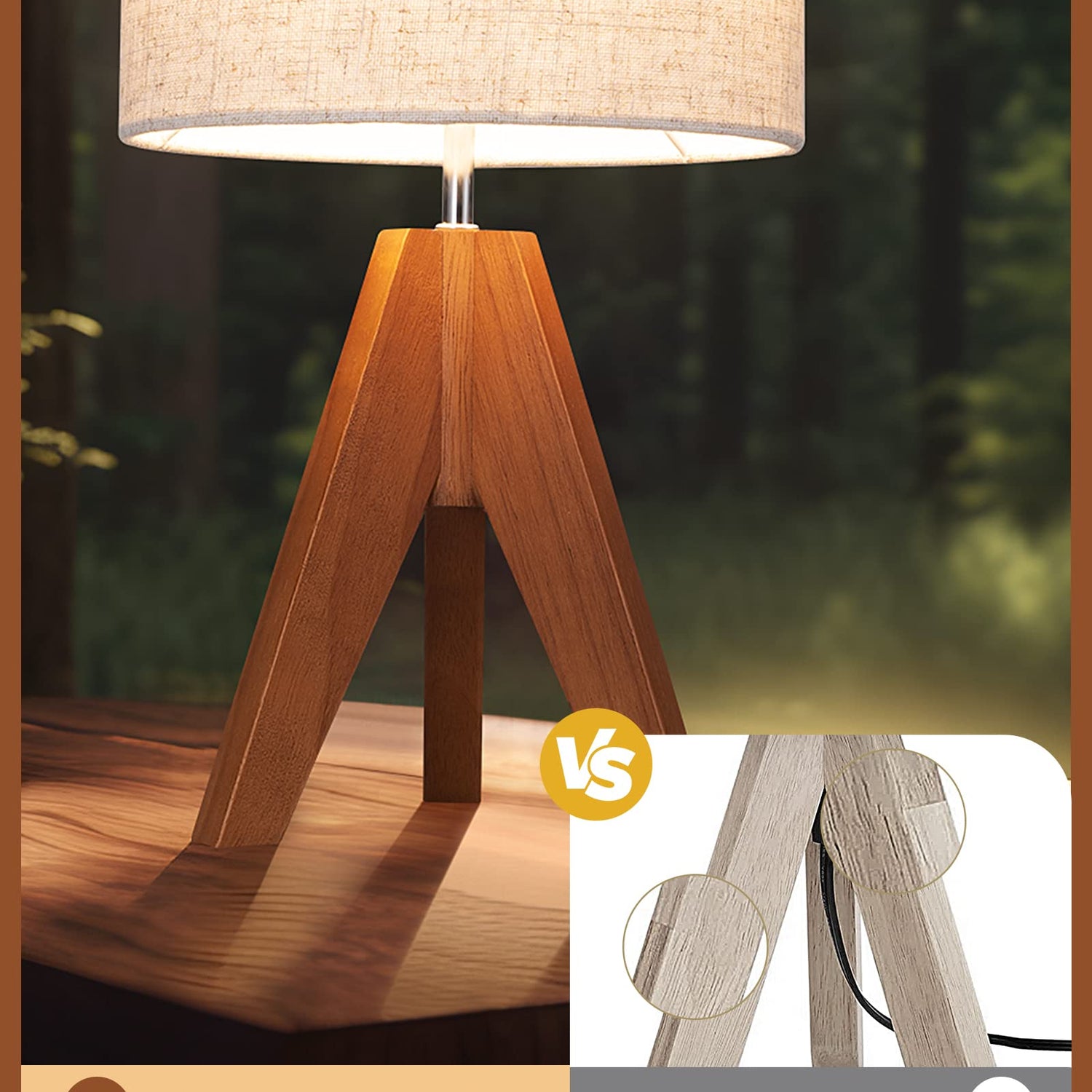 - [Stable Wooden Tripod] Equipped with wooden tripod, the end table lamp is stands strong and steadfast, not easy to tip over and gives you a reassuring sense of security, just enjoy the beautiful light; ideal for bedroom, living room, child room and nursery
