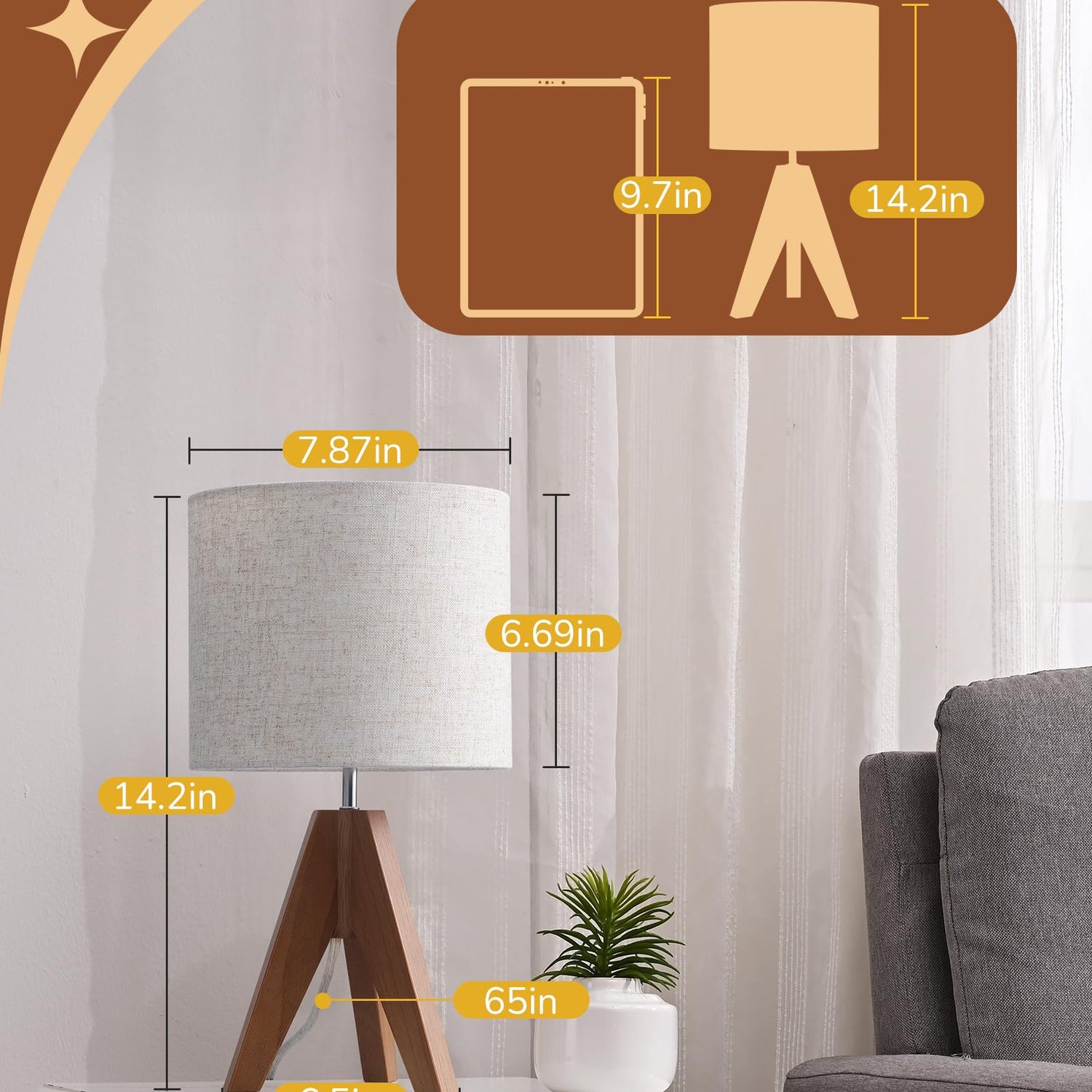 - [Small Size & Space Saving] With its compact dimensions of 14.2 (H) x 7.9 (W) x 6.7 (D) inches, this bedside table lamp fits snugly into any cozy corner in your place, gracing your table, desk, or nightstand with a hint of class and usefulness