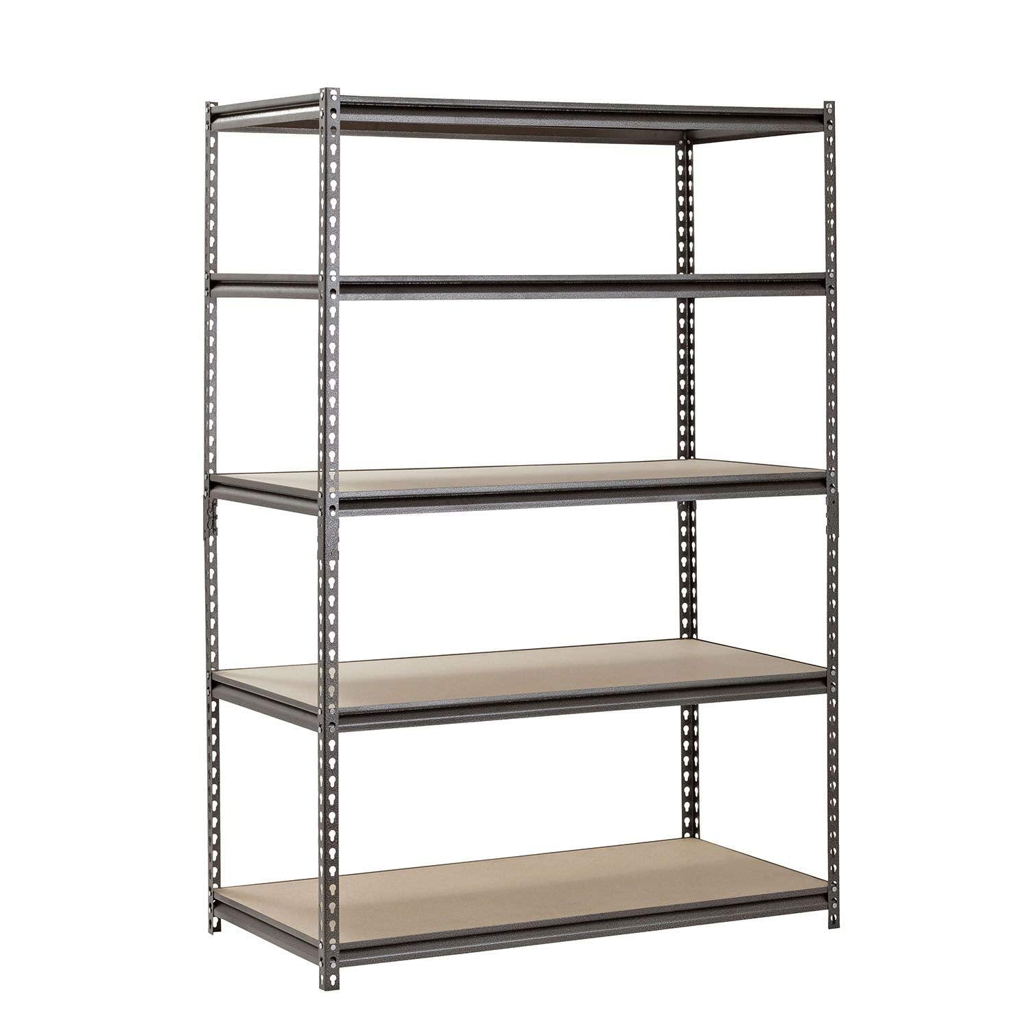 Details: Store and Organize your items with this Steel Shelving unit. This Black Steel Shelving unit features a Z beam construction for added strength and rigidity, so that these shelves will be able to handle lots of weight. The five selves are made of particle board and are specifically designed to support heavy loads. These shelves can also be adjusted every 1.5" so you can assemble and adjust the 5-shelf Edsal Heavy Duty Shelving to fit your every need. This shelving storage unit can hold up to 4000 lbs as long as the weight is distributed evenly over the entire unit. This unit is ideal for storing tools and other heavy equipment in the garage, tool shed or even your greenhouse. Dimensions 72" H x 48" Width x 24" Depth