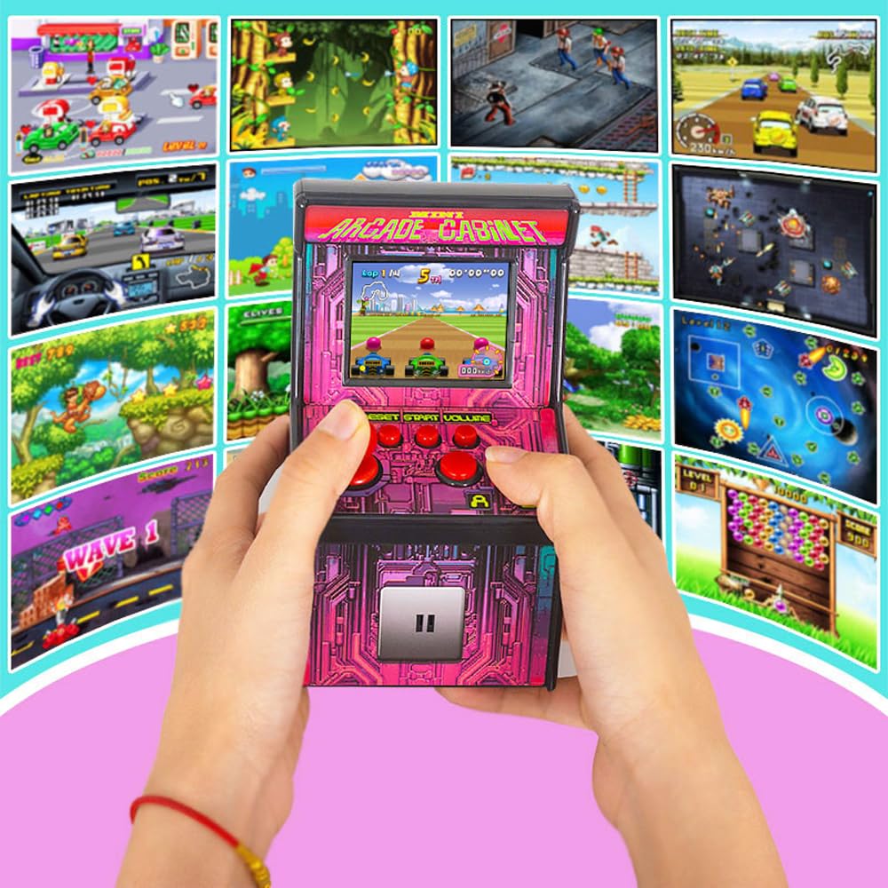 - 👝【Portable and Compact to Carry】Portable and compact, our mini retro arcade cabinet is your pocket-sized portal to gaming bliss. Take it anywhere for on-the-go fun and nostalgia-filled adventures!
