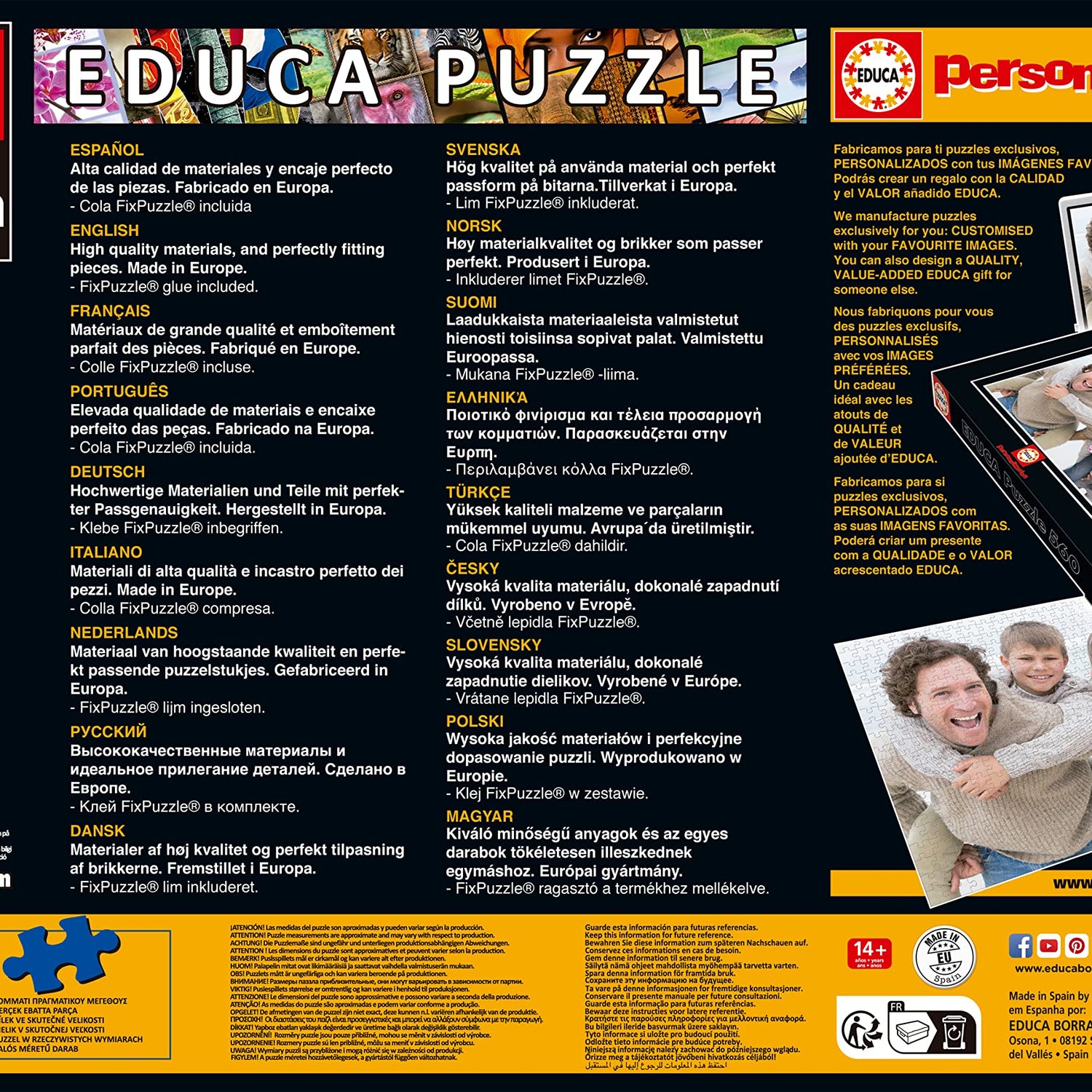 Details: Educa® offers you the most complete collection of Puzzles for Adults on the market, with sizes ranging from 300 to 42000 pieces and with the best pictures and the most entertaining characters. Approximate size of the assembled puzzle: 85 x 60 cm.