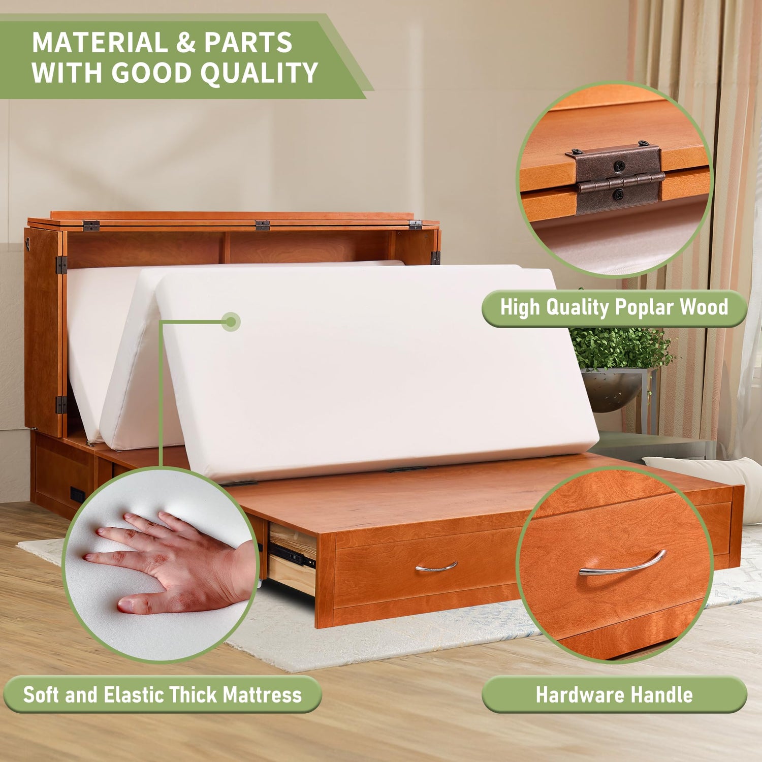 - Easy Transition & Comfortable Mattress: Designed for hassle - free use by anyone—from seniors to busy parents. The smooth - operating hinge system makes converting the murphy bed cabinet queen from cabinet to bed (and vice versa) effortless. The included queen - sized mattress provides plush comfort for a restful sleep. No more struggling with complicated setups or uncomfortable makeshift beds—enjoy a seamless, cozy experience every time