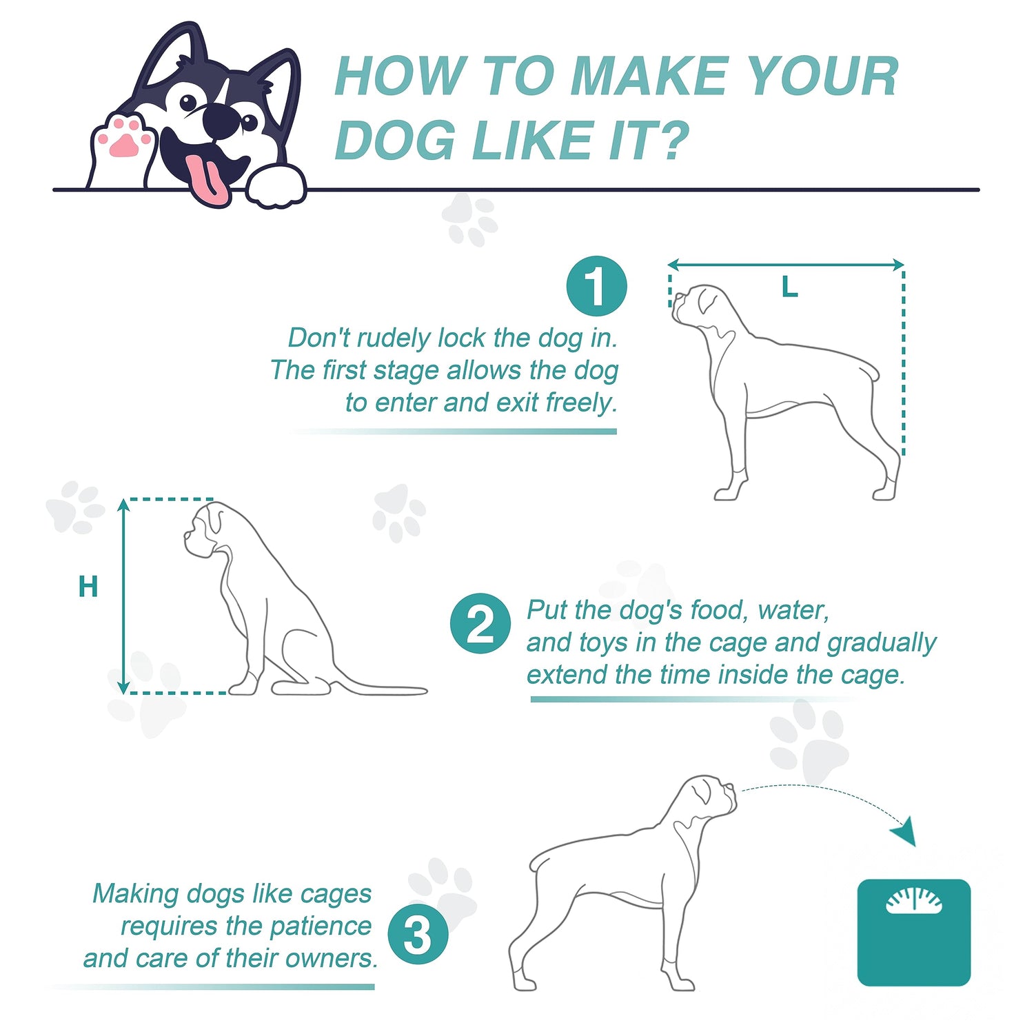 - 【REMOVABLE DIVIDER DESIGN】The removable divider design makes the dog cage more creative. When the divider is placed the inside of the crate is divided into two separate spaces, turning it into two crates instantly. For larger dogs, simply remove the divider to comfortably accommodate them and give them a large space to move around.