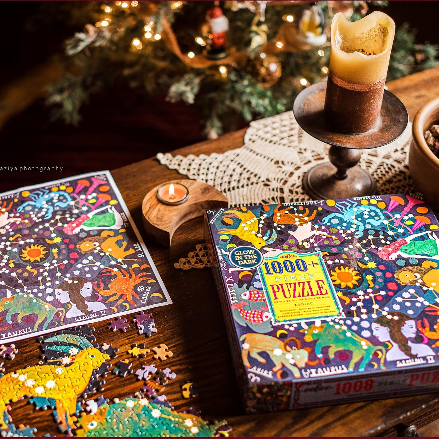 eeBoo Piece and Love Zodiac Constellation 1000-piece Square Adult Jigsaw Puzzle Glow in The Dark, Jigsaw Puzzle for Adult and Families, with Glossy, Sturdy Pieces and Minimal Puzzle Dust