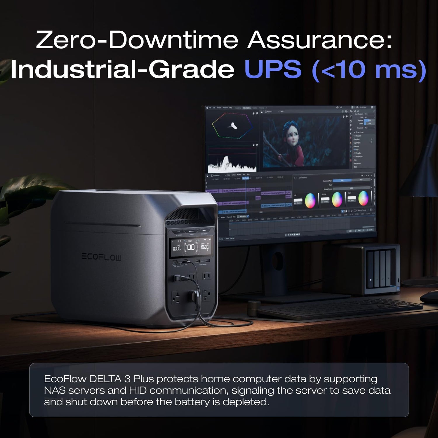- 10 ms Switch-Over UPS Protection. The DELTA 3 Plus functions as a true UPS with a 10 ms switch-over time, ideal for NAS, servers, POS systems, and critical backups, ensuring no data loss from unexpected shutdowns.