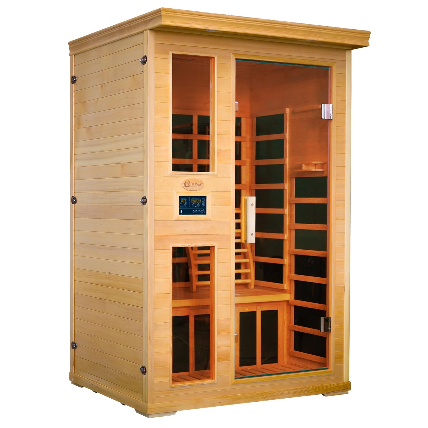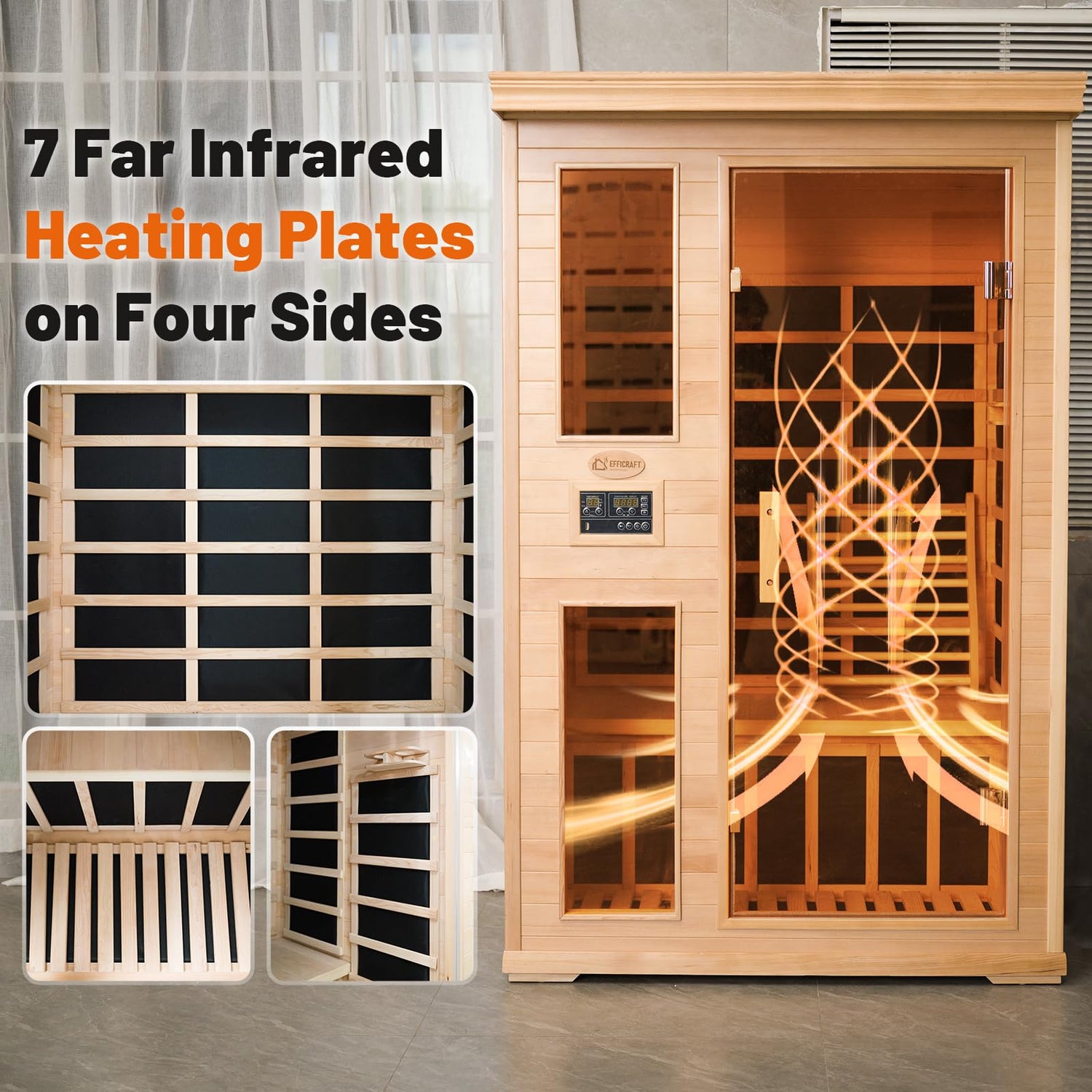 Efficraft Infrared Sauna Indoor,1-2 Person Hemlock Wooden Home Sauna w/Backrest, Dry Sauna for Home Spa Room 1800W, Time Temp Pre-Set Sauna Room,7 Heating Panels Personal Far Infrared Saunas for Home