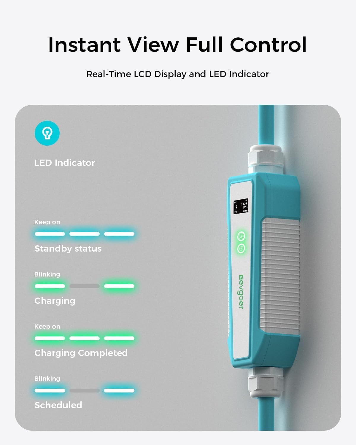EG evgoer Electric Vehicle Charger Level 2 & Level 1, 32Amp 110V-240V Schedule Timer 20ft Cable Portable EV Home Charging Station, 8A-32A Adjustable Current Compatible with All SAE J1772 EVs