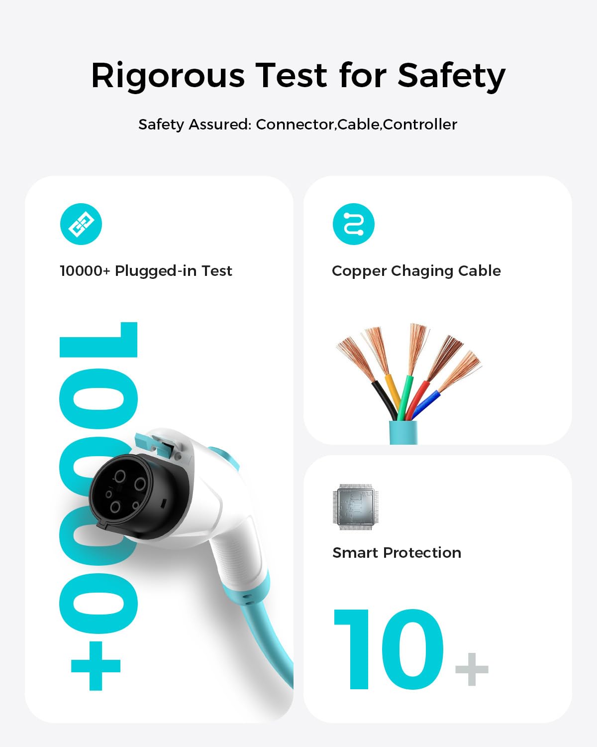 - 【UL STANDARD & SAFE EV CHARGER】The 32A EV charger uses high-quality raw materials, and both the charging gun and the cable are in compliance with UL standards , so you can use it with confidence and safety. Our level 2 EV charger features advanced S-PROTECH technology for safe and smart charging at maximum speed. It is designed to protect against short-circuit, current leakage, grounding, thermal overload, over-charging, and over-current