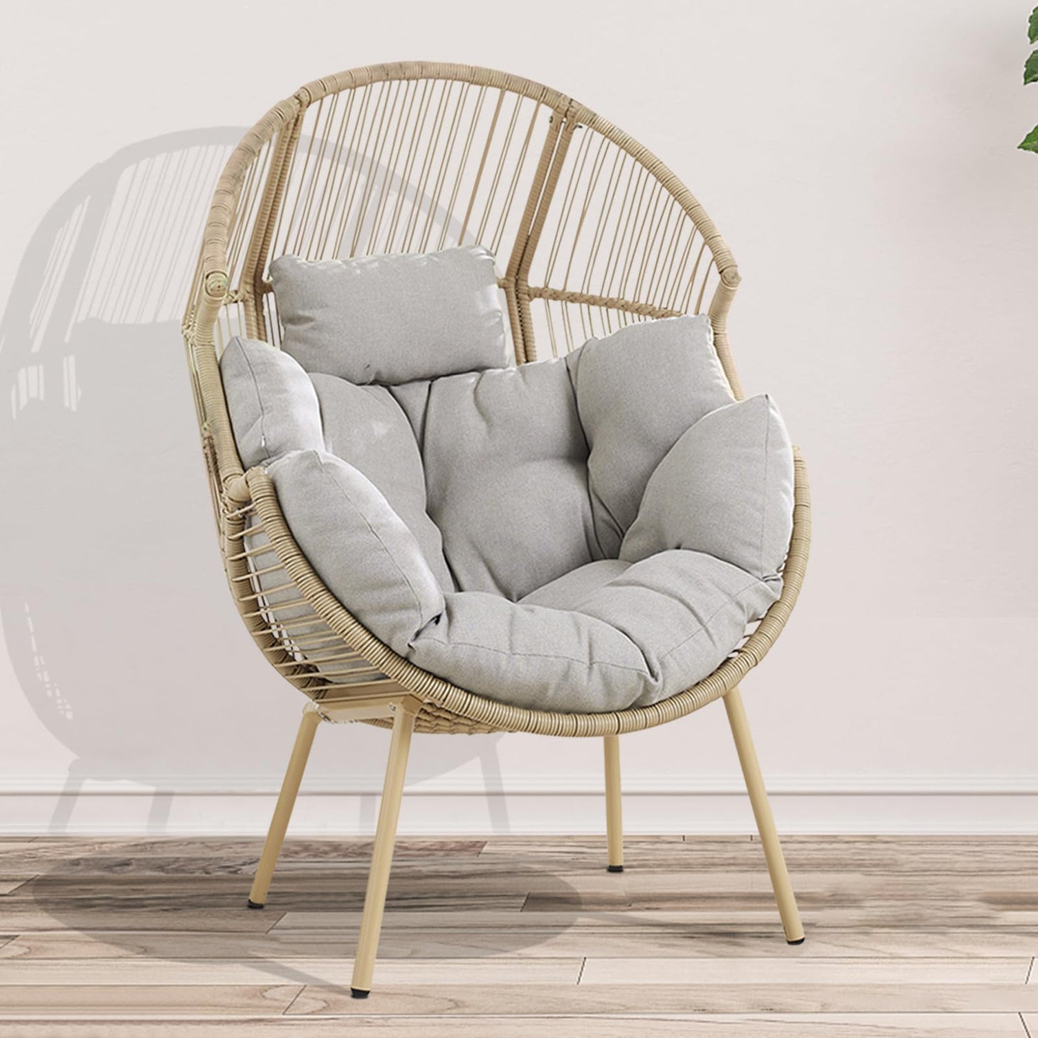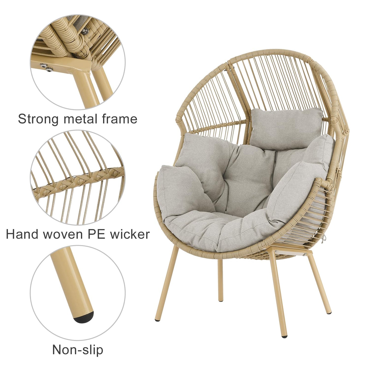 - 【Durability Material】Seat and frame of outdoor egg chair is constructed of polyethylene rattan resin wicker wrapped around a iron frame for weather-resistant protection,strength and durability.Back features texling rope.You can use this rattan egg chair for years to come.