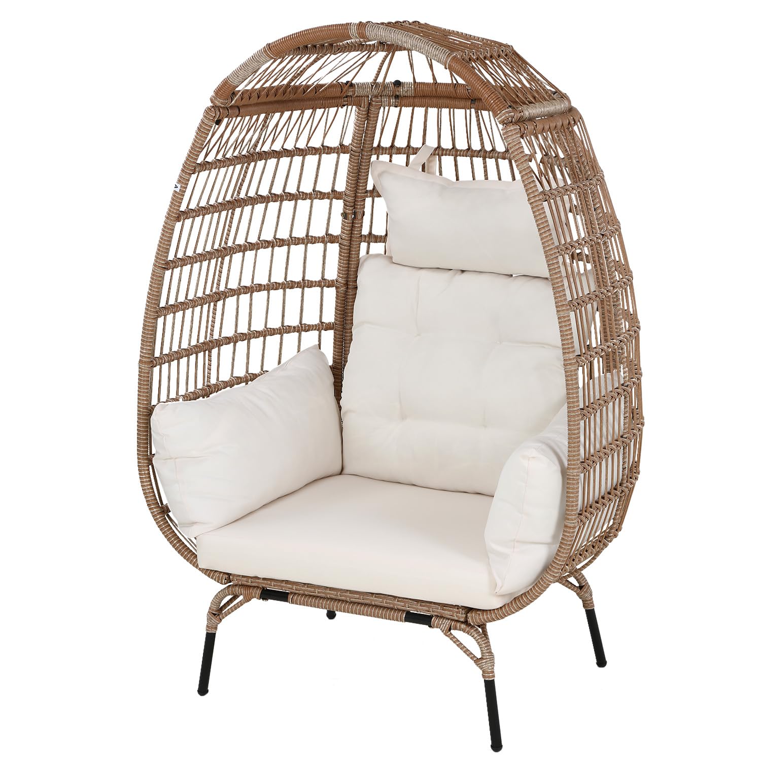 Details: Experience unparalleled comfort and style with our oversized egg chair. Hand-woven from durable PE rattan and supported by a sturdy metal frame, this outdoor lounge chair is designed to be a stunning addition to any patio, backyard, or indoor space. The robust construction ensures stability and durability, providing a reliable seating option for years to come. Complete with soft padded cushions and a robust 352 lb weight capacity, this egg chair is the perfect blend of luxury and functionality. Our egg chair is all-weather resistance and an ideal choice for year-round enjoyment.
