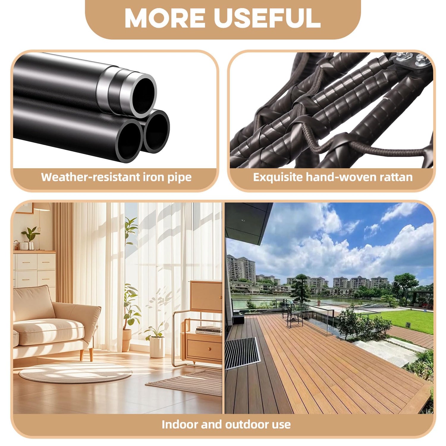 - 【Built to Last for Years of Enjoyment】Handwoven from excellent weather-resistant PE wicker and supported by a reinforced powder-coated steel frame, our egg chair delivers unwavering stability with a 350-lb weight capacity for years of reliable enjoyment