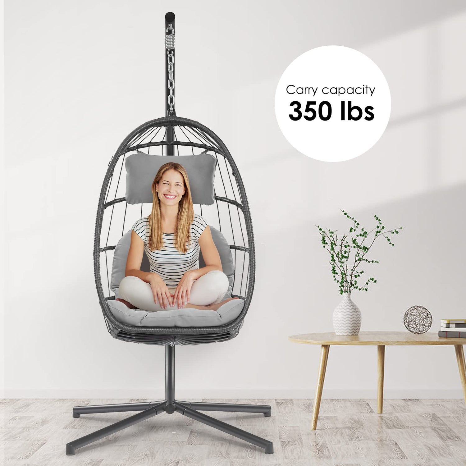 - Complete accessories & professional customer service - The hanging chair includes one egg hammock chair, one hook, one stand, one cushion, one pillow, a safety rope, and an accessories tool bag. Overall Size 38''x38''x78'',Seating Size 29.2x25.6x42.5'' it is big enough for different person. Provide a 24/7 professional customer service team to solve any problems you encounter at any time.