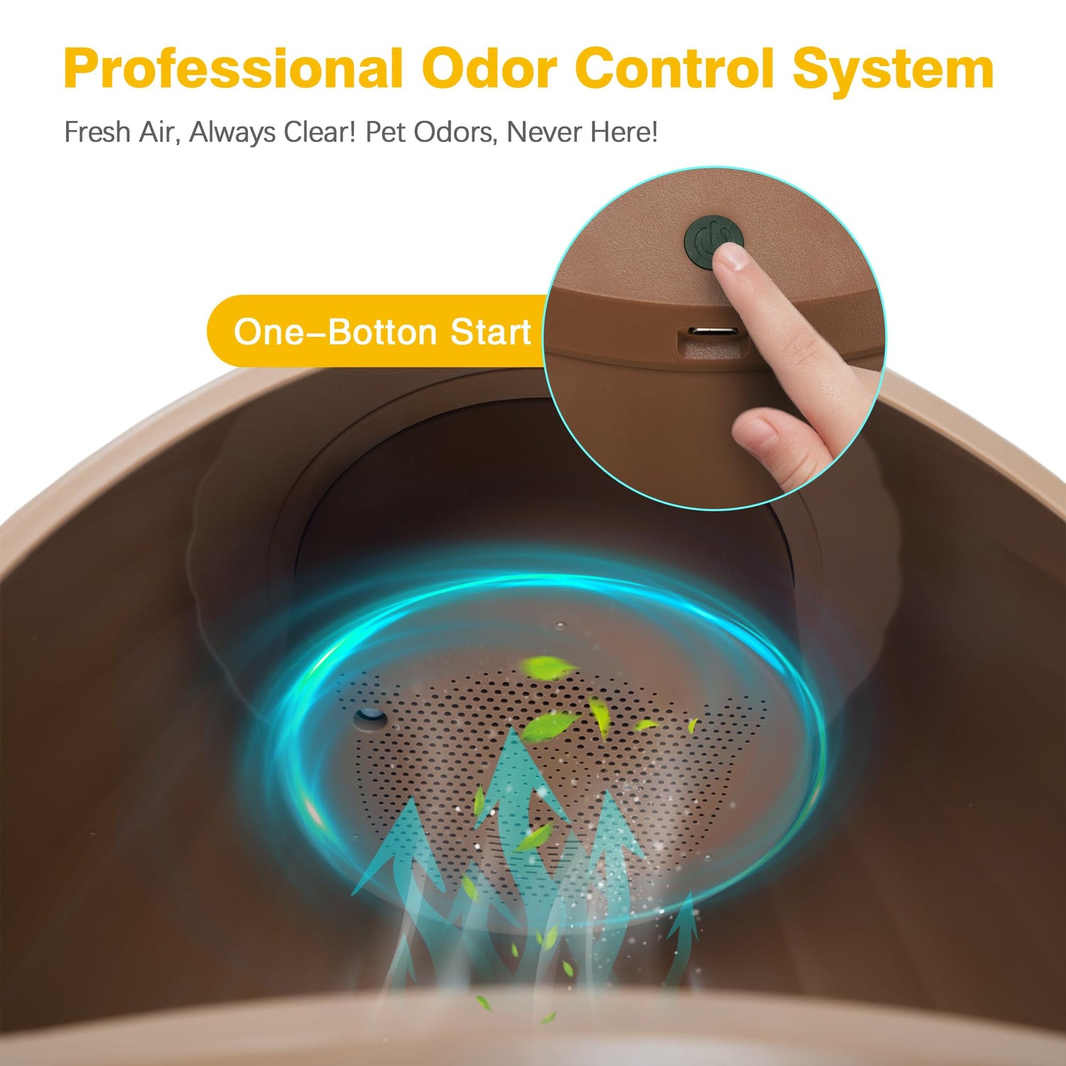 - π Smart Odor Management: Featuring intelligent deodorizing and sterilizing technology, this litter box eliminates up to 99% of pet waste odors. Its quiet system keeps your home smelling fresh, while the built-in light lets you easily check its status.