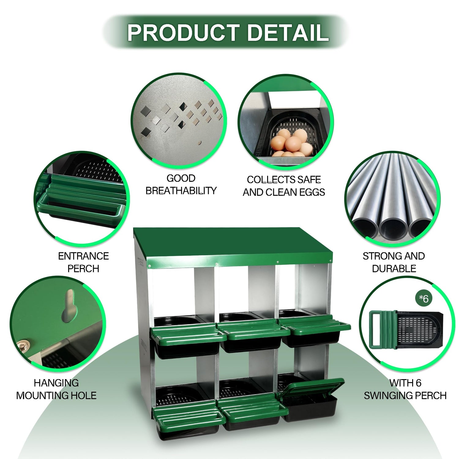Eggluuz Chicken Nesting Box, 6 Compartments Chickens Egg Laying Nest Boxes for Hens