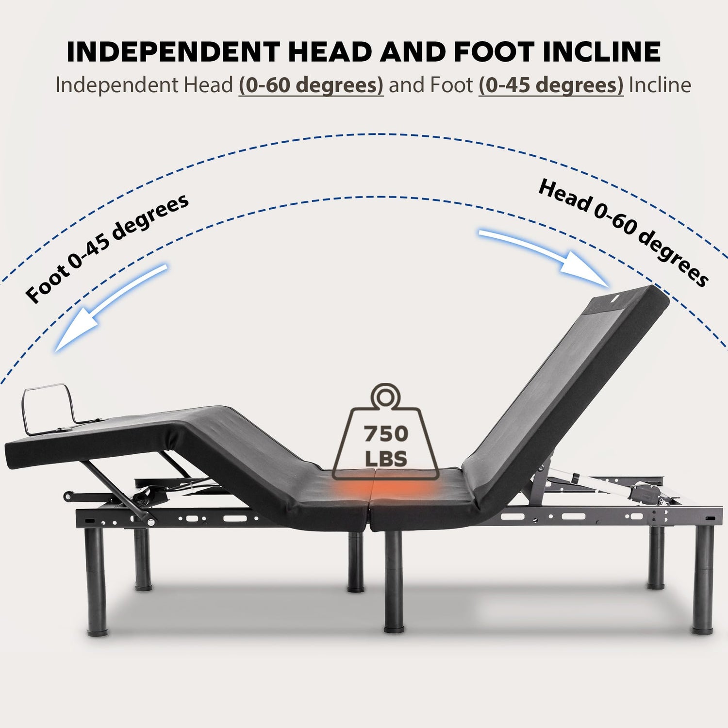 - YOUR GOOD SLEEPING BUNDLE - This is a perfect bundle of adjustable bed with mattress. Each adjustable bed base owns the head incline from 0° to 57° and foot incline from 0° to 38°. You can easily sit up in bed to watch TV, work on a laptop, or read a book without extra pillows. The adjustable beds use premium quality steel which can withstand over 750 lbs.