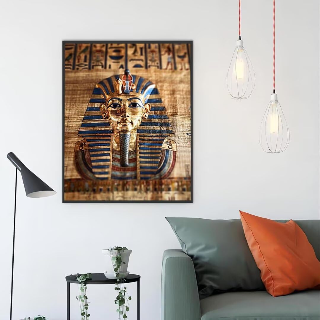 Egypt Diamond Art Kits For Adults, Diamond Painting Egyptian Pharaoh Diamond Art kits with Full Drill Round Diamond Painting Kits, DIY Diamond Dots Gem Art Crafts for Adults for Home Decor 12x16in W-9