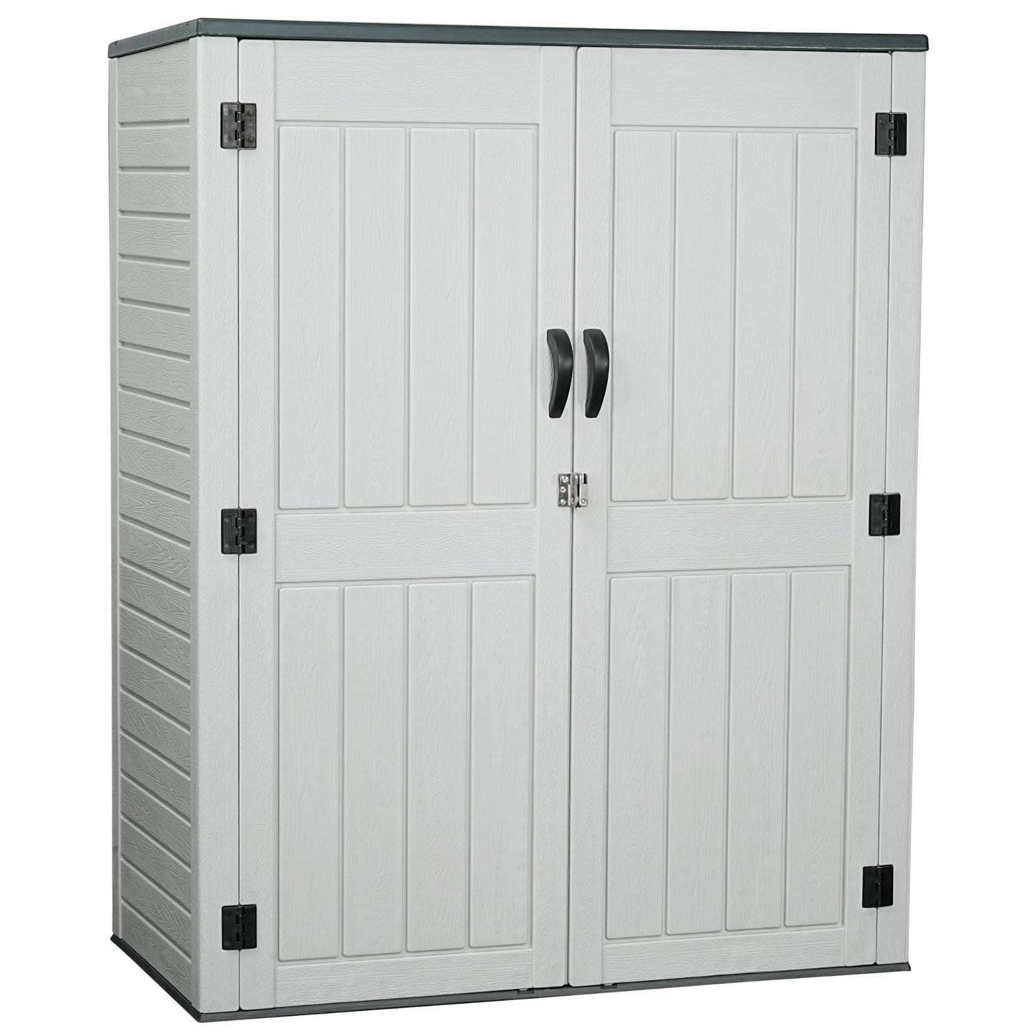 EHHLY Vertical Resin Storage Shed, 60 Cuft Garden Tool Sheds & Outdoor Storage, Plastic Outdoor Storage Cabinet Waterproof, 5.6 x 2.3 ft Backyard Outside Lawn Mower Storage Shed, White