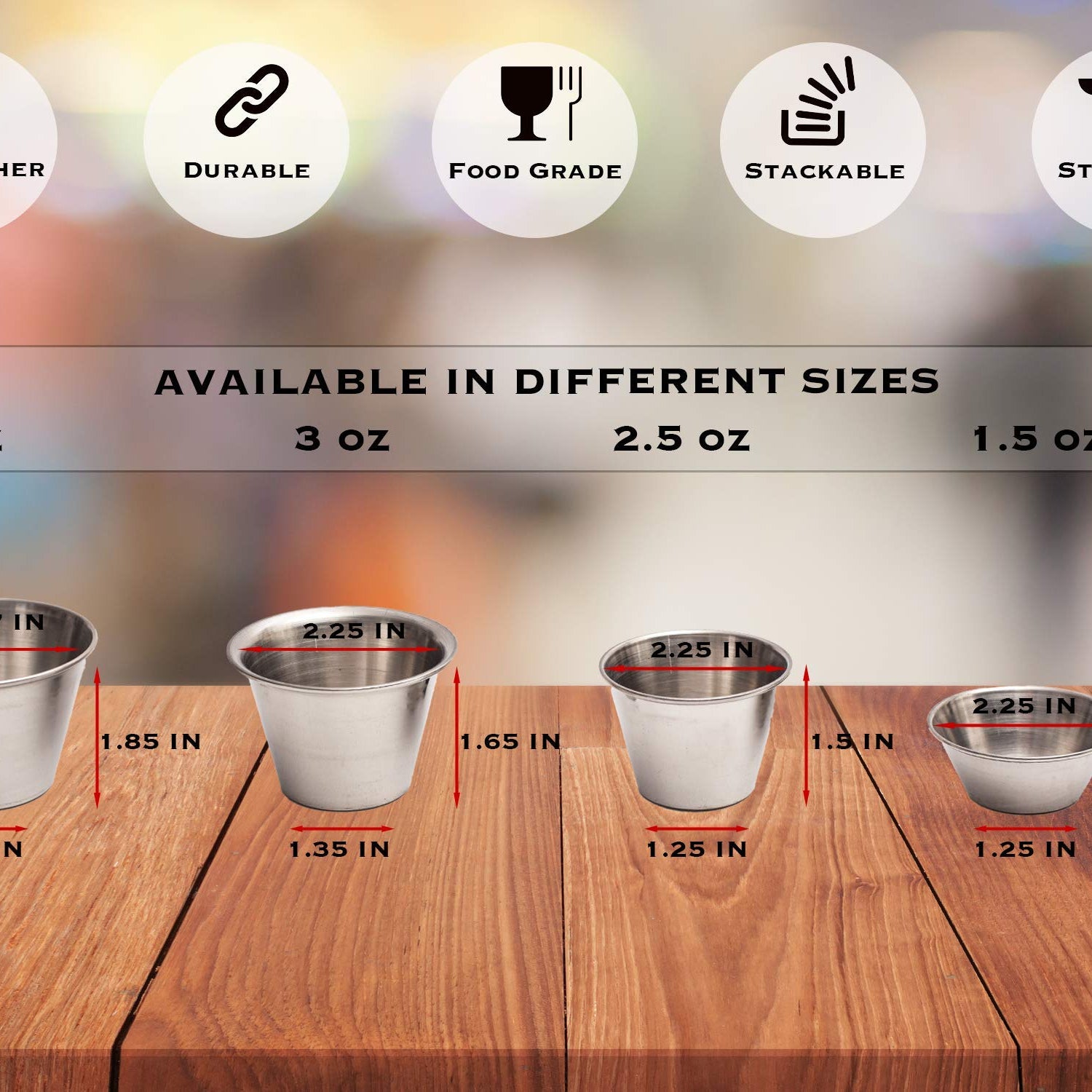 - Compact and Convenient: These 2.5 oz ramekins are small steel cup sized, making them easy to store and handle. Ideal for use as au jus cups, they are a practical and stylish solution for serving and storing sauces and condiments.