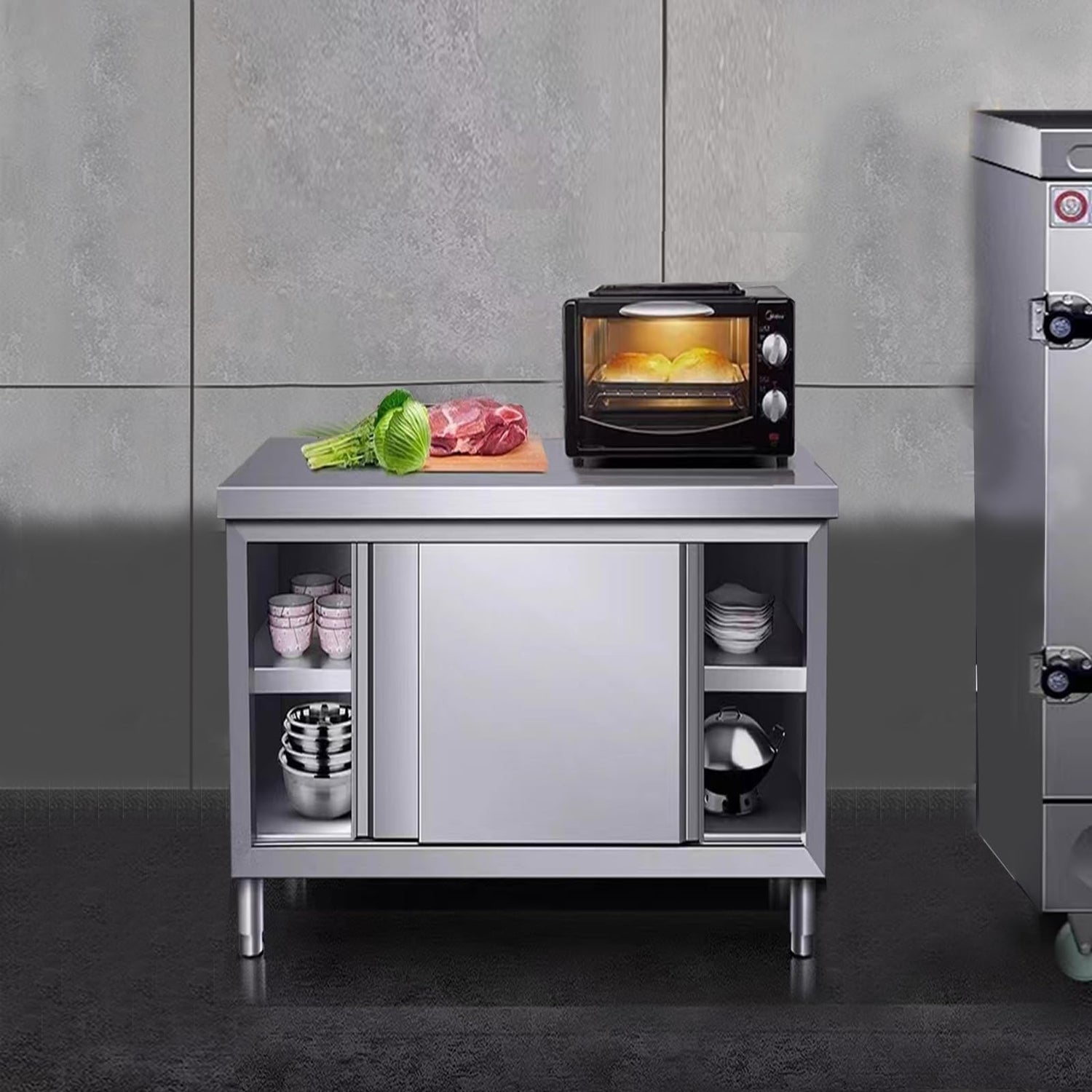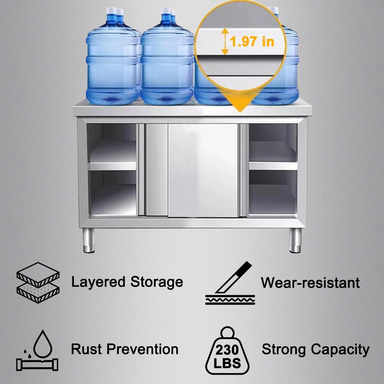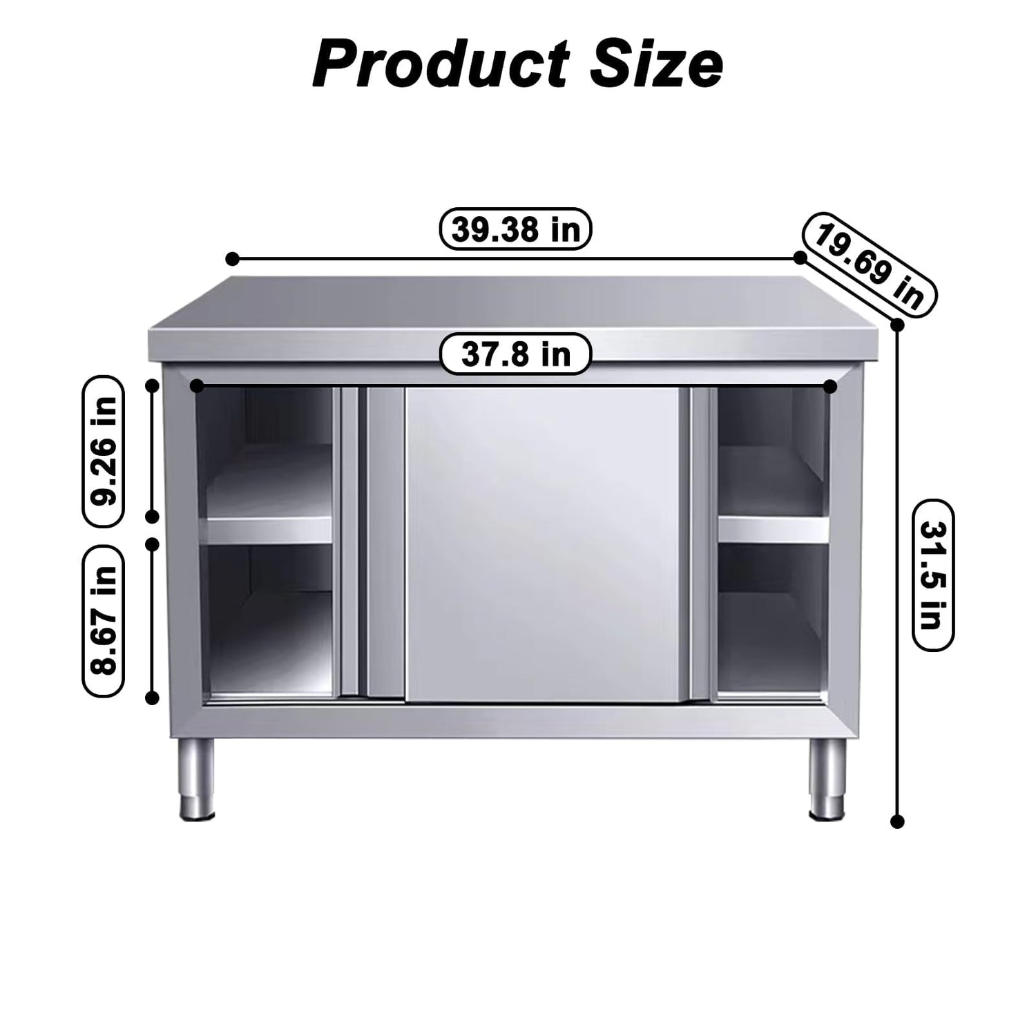 EHONXI Stainless Steel Commercial Worktable w/Sliding Doors for Prep & Work, 39" x 20" Commercial Kitchen Prep Table, Heavy Duty Workbench w/Cabinet for Home, Restaurant, Hotel and Garage