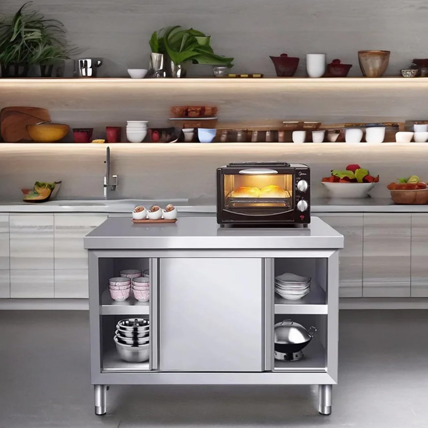 - Premium Stainless Steel Material- Crafted from premium stainless steel, this kitchen prep table ensures long-lasting durability and resistance to rust and wear. Its sleek and polished surface adds a touch of sophistication to your workspace.
