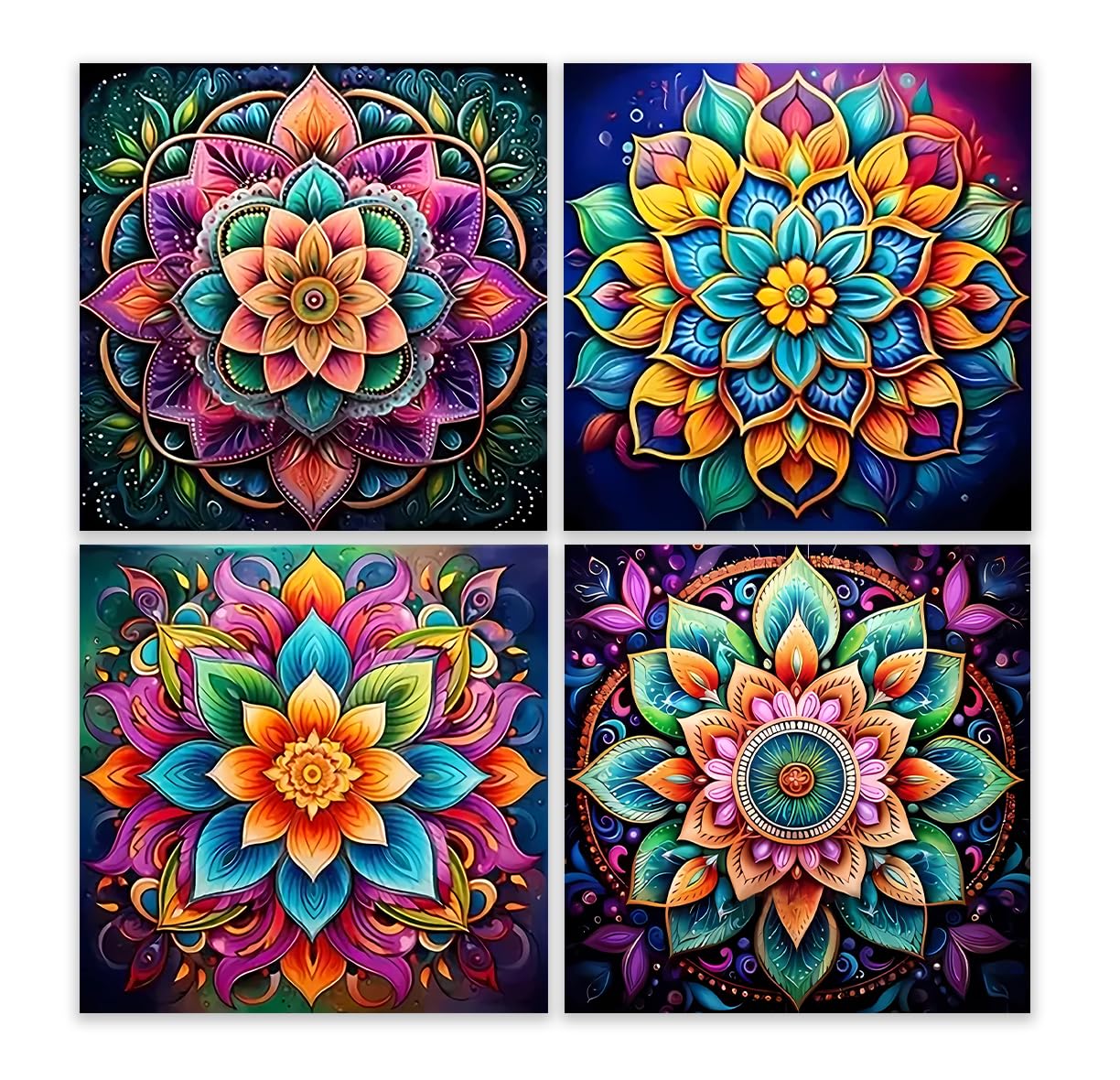 Details: 4 Pack Diamond Art Kits for Adults - Mandala 5D Diamond Painting Kits for Beginner,DIY Gem Art Full Drill Diamond Dots Crystal Craft Kits for Gift Home Wall Decor 12x12inch