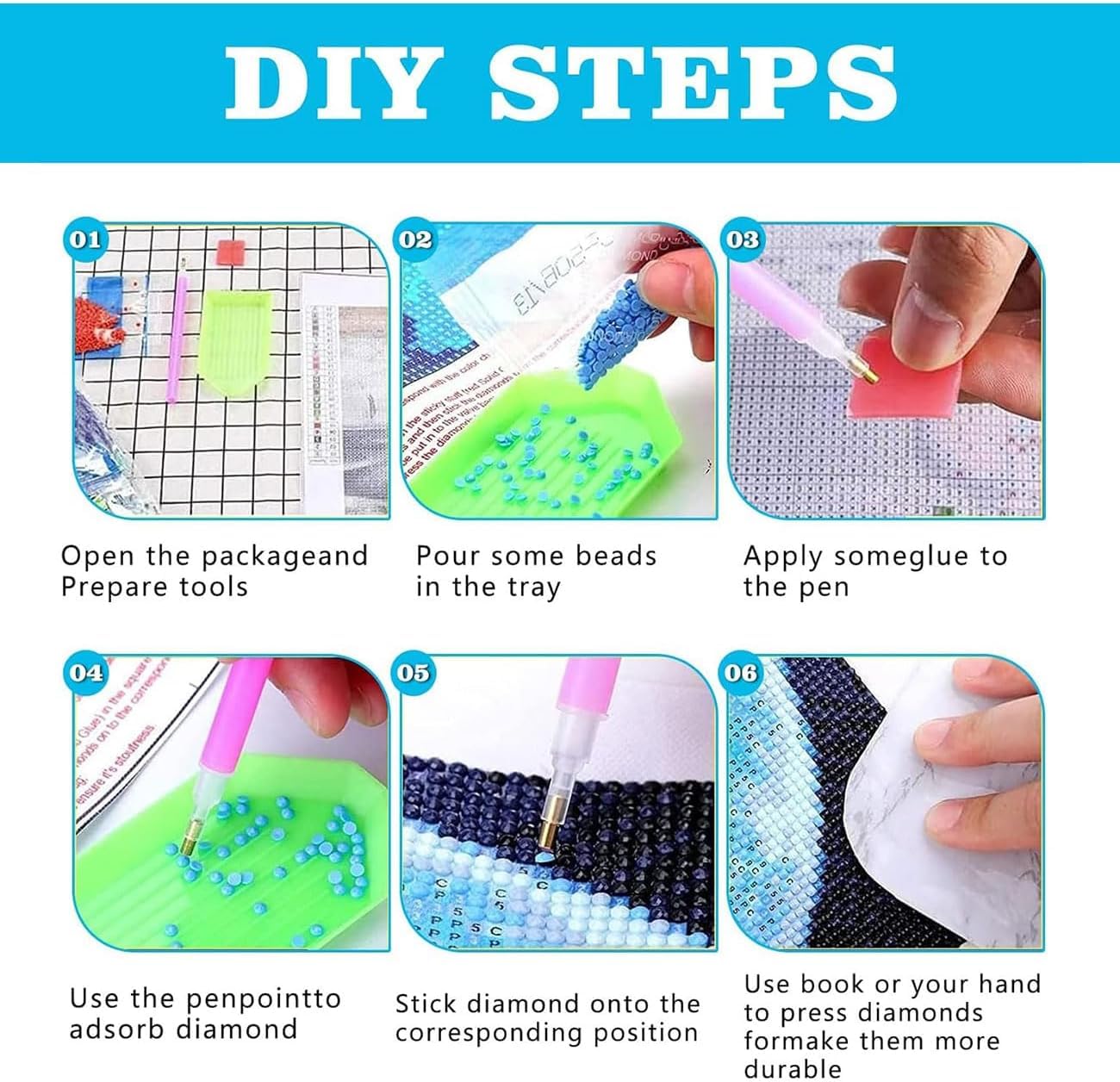 - 【Package Included】 1*canvas, 1*diamond pen, 1* glue, 1*new design plastic tray, 5* self-sealing bags and enough round diamonds. You get about 20% extra beads in every color. A Diamond Canvas Kit lets you make stunning diamond art, no artistic skills required