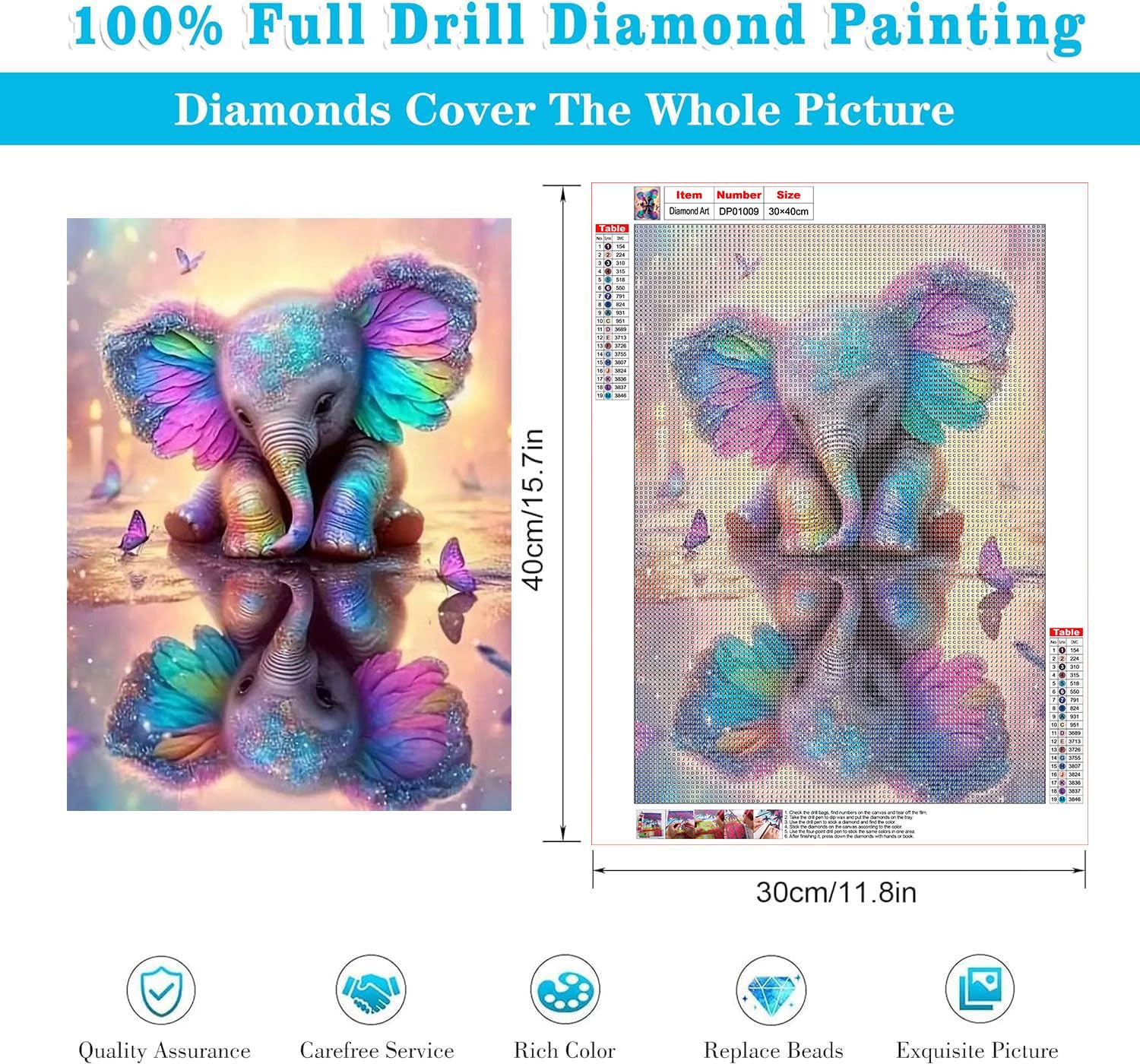 EIBEILI 5D Elephant Diamond Art Kits for Adults Beginners,DIY Butterfly Full Round Drill Diamond Painting Kits,Diamonds Dot Gem Art Crystal Easy Home Wall Decor 12x16inch