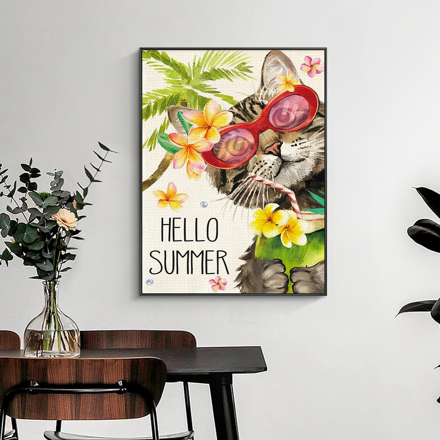 EIBEILI Cat Diamond Art Kits for Adults,5D Summer Diamond Painting Kits for Beginners,DIY Round Full Drill Painting with Gem Art Craft Kits for Home Wall Decor 12x16inch