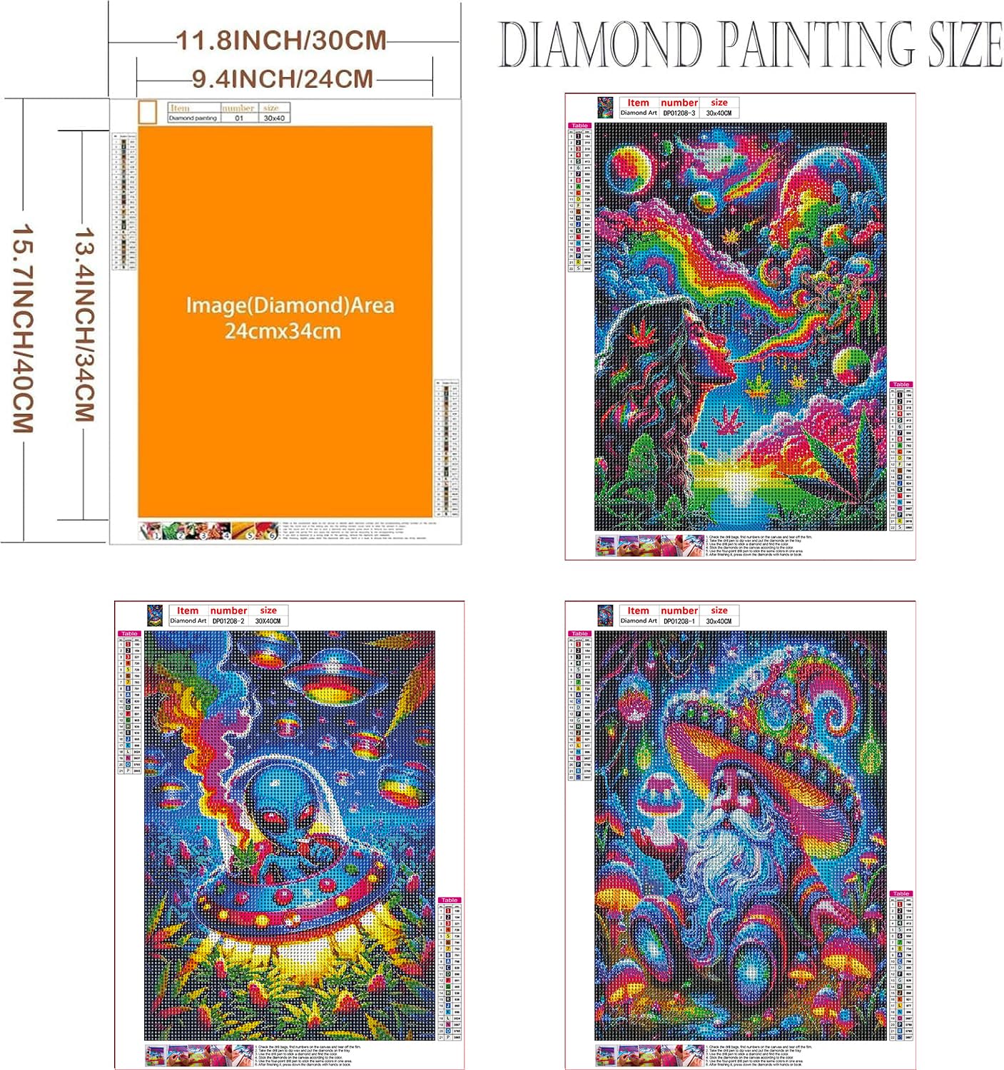 EIBEILI Diamond Art Kits for Adults - 3 Pack Hippie Hippy Alien,Starry Rainbow,Gnome Diamond Painting Kits for Adults,5D Round Full Drill Gem Art,DIY Crafts Kits for Gift Home Wall Decor 12x16inch
