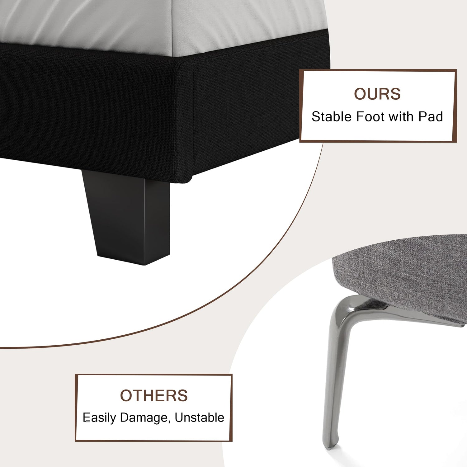 - Thoughtful Design: Crafted with soft linen edges to prevent accidental bumps, this bed base also features EVA silent strips and anti-slip pads, creating a safe and serene bedroom environment for ultimate comfort