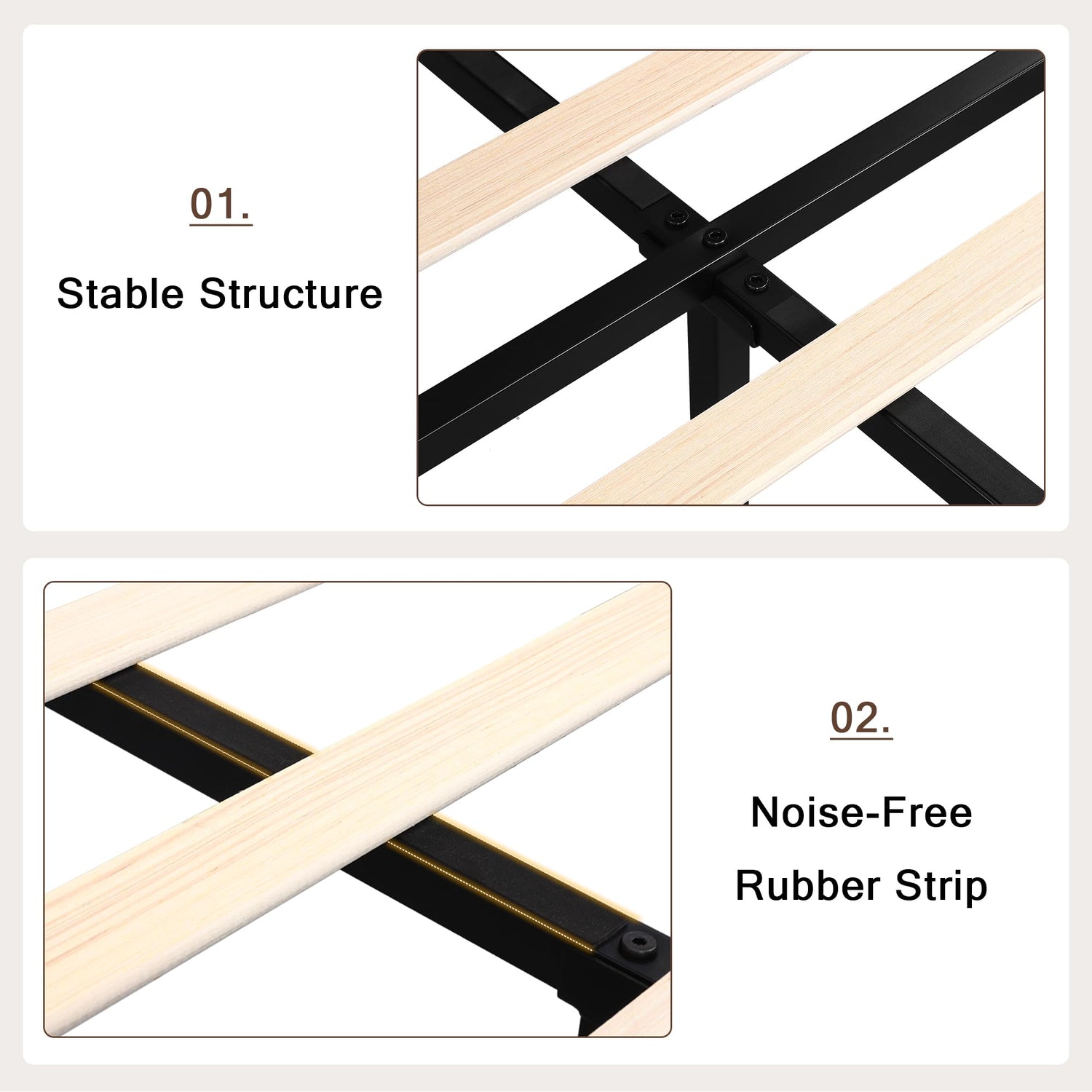 - Quick Assembly: Equipped with complete installation tools and convenient Velcro on wood slat to complete heavy duty bed assembly in just 30 minutes, enjoying a comfortable bedroom life easily