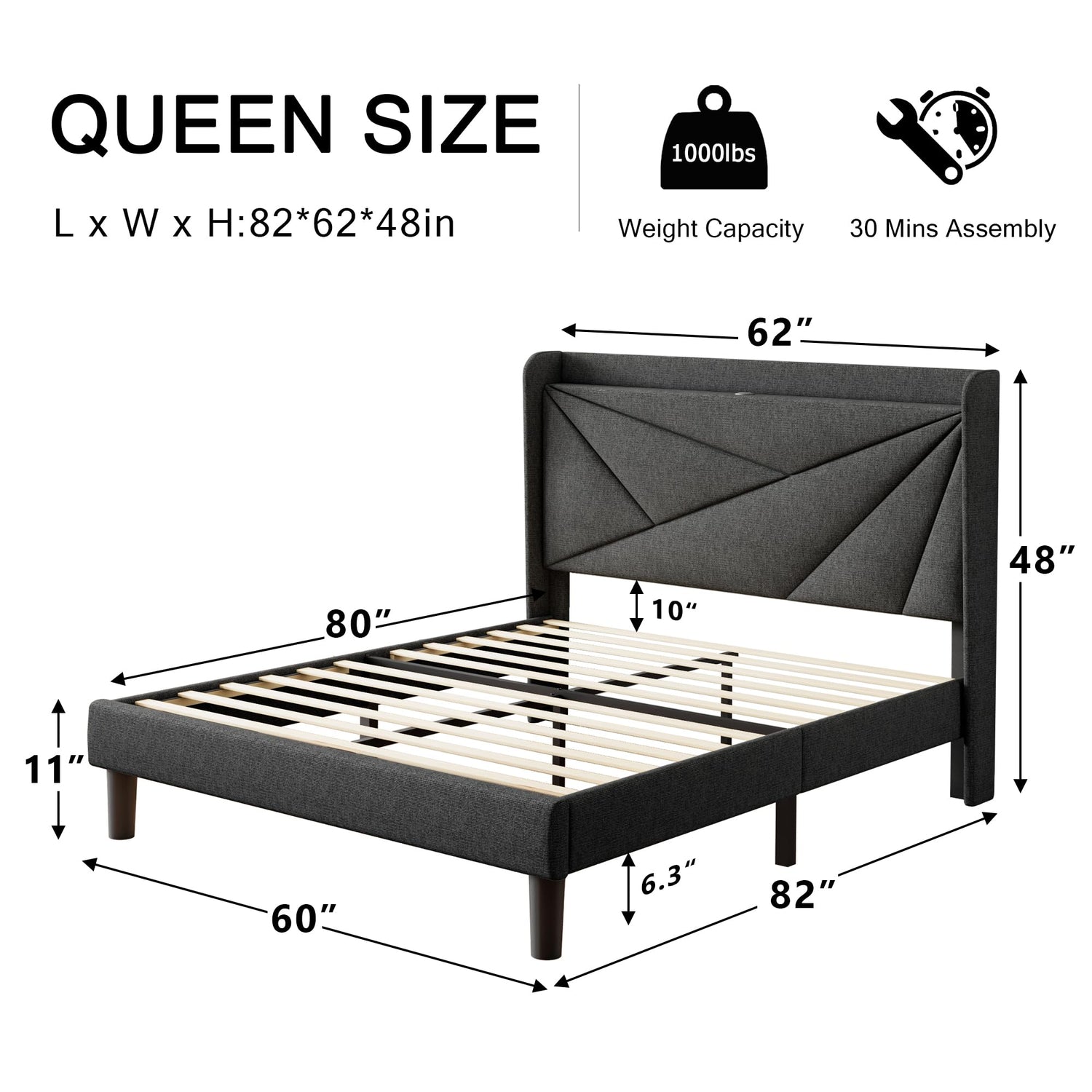 Elevate your bedroom experience with the Einhomn Dark Grey Queen Size Upholstered Bed Frame—where modern design meets practical features for the ultimate in relaxation.