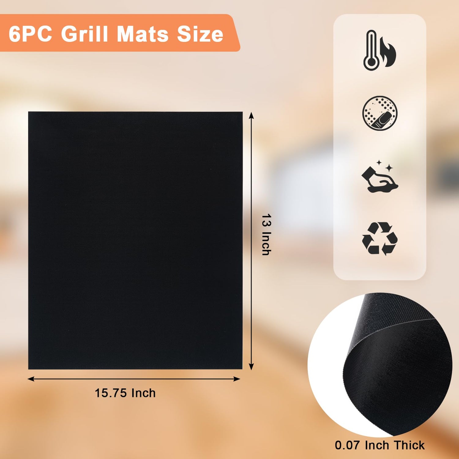 Eisinly Grill Mats for Outdoor Grill, Set of 6 Reusable Baking Mat Non Stick Heat Resistant Grilling Mat, Grill Accessories Works on Gas Charcoal and Electric BBQ, 15.75 x 13-inch, Black