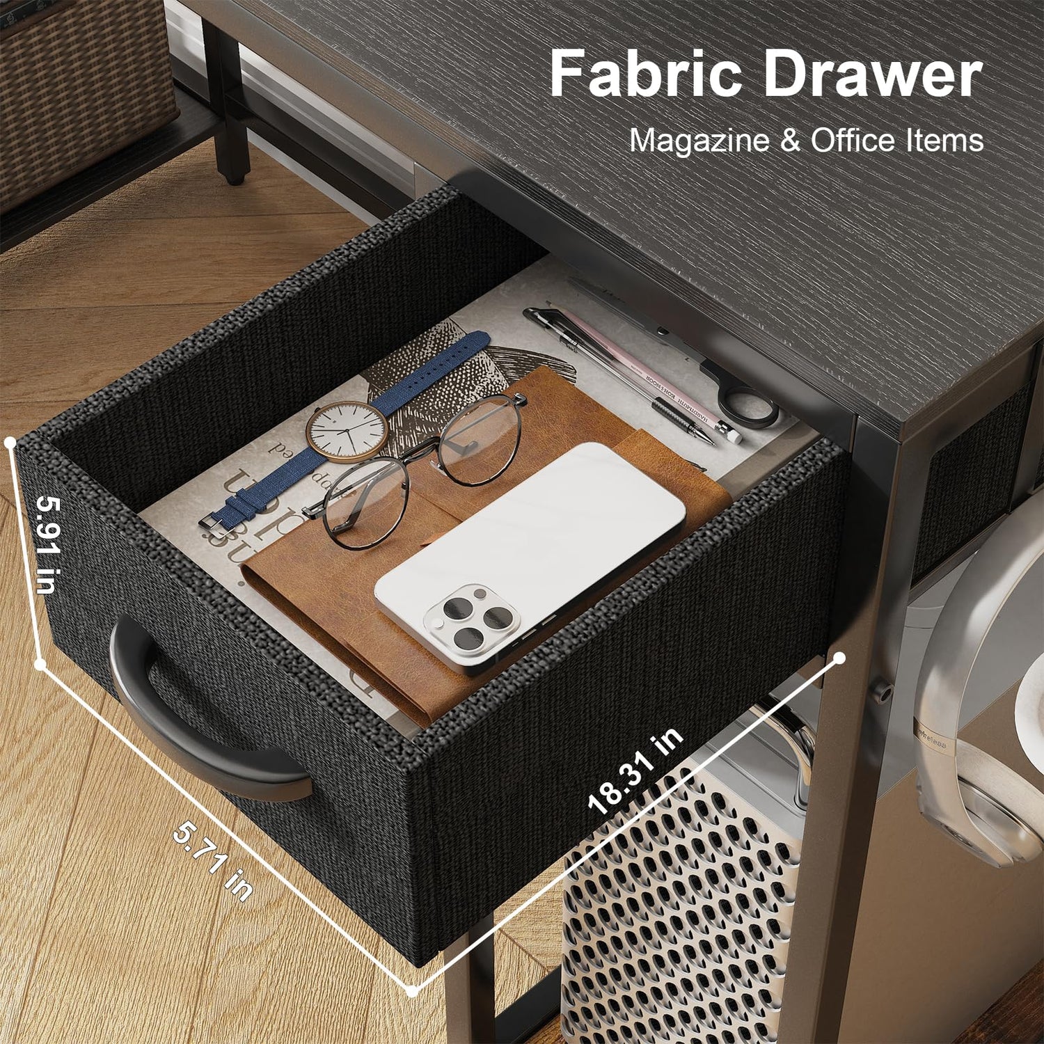 Eivanet 47 inch Gaming Desk with Power Outlet & LED Light, Reversible L Shaped Desk, L Shaped Desk with Hook & Monitor Stand, Computer Desk with Drawer and Shelves for Home Office Bedroom