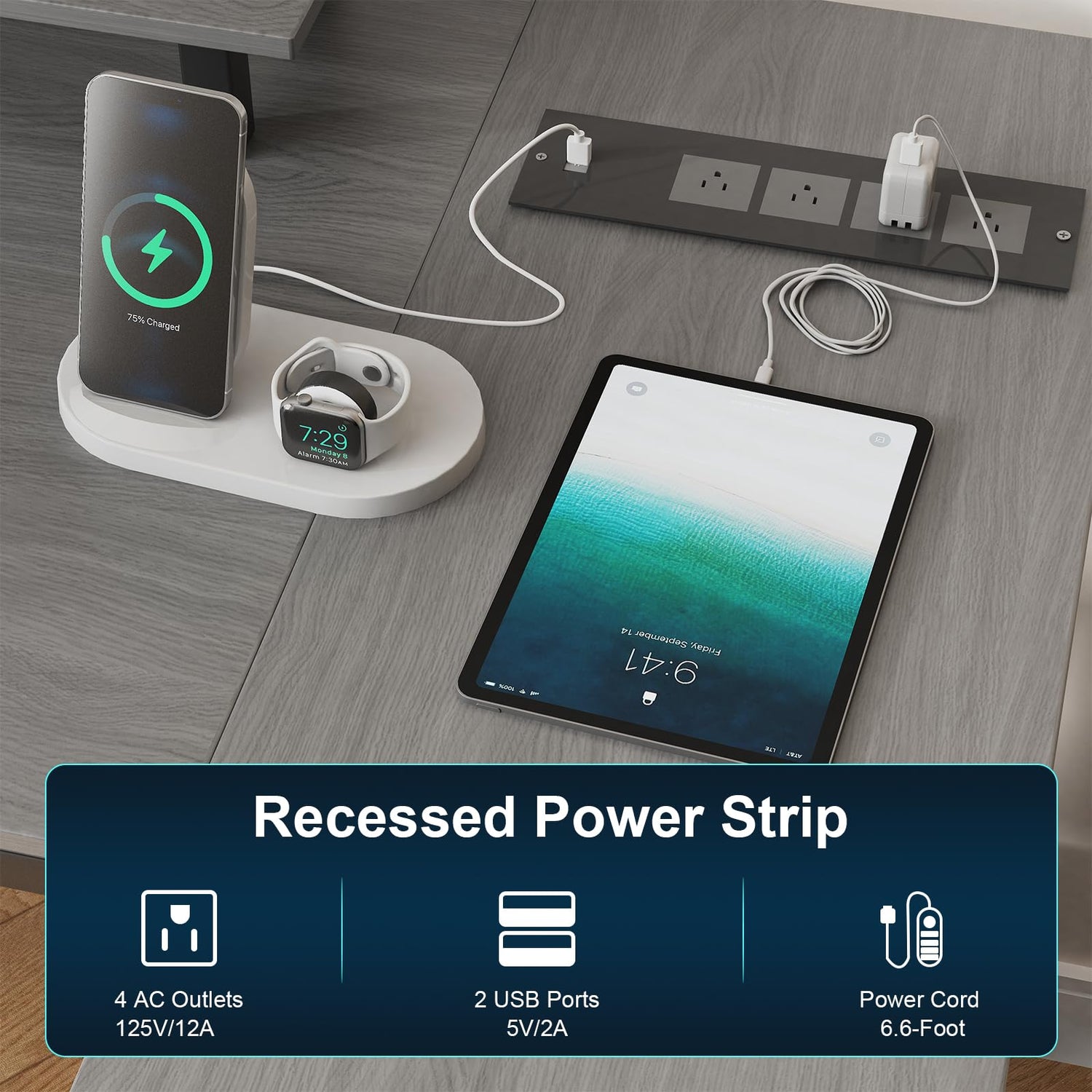 - Rechargeable Computer Desk: The L shaped gaming desk includes a built-in power strip with 4-Outlet & 2 USB Ports, which can easily charge phones laptops, gaming gear and other office devices. Monitor stand on the desktop elevates your line of sight, allowing you to maintain proper sitting posture and protect your cervical and spine health