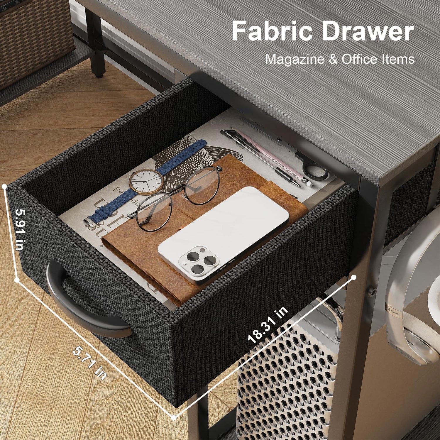 - L Shaped Computer Desk With Storage: 47.2"(L) x 31.5"(W) x 29.53"(H). Lots of legroom, the desktop and two storage shelves on the side provide ample space for storing an unlimited amount of office supplies and documents. The PC tower can be conveniently placed on the bottom shelf, while a drawer is available to store stationery and other personal items, which can be used as a writing desk, study desk, or game table, designed specifically for modern home offices