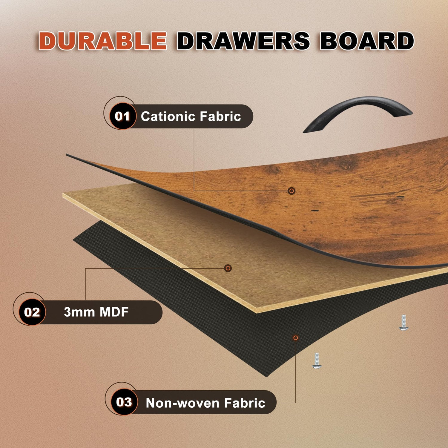 The non-woven fabric drawers are not only breathable but also easy to clean; simply wipe them down with a damp cloth. Made from high-quality MDF, the water-resistant design ensures long-lasting durability. The easy-to-pull plastic handles guarantee smooth opening and closing, making organisation a breeze.
