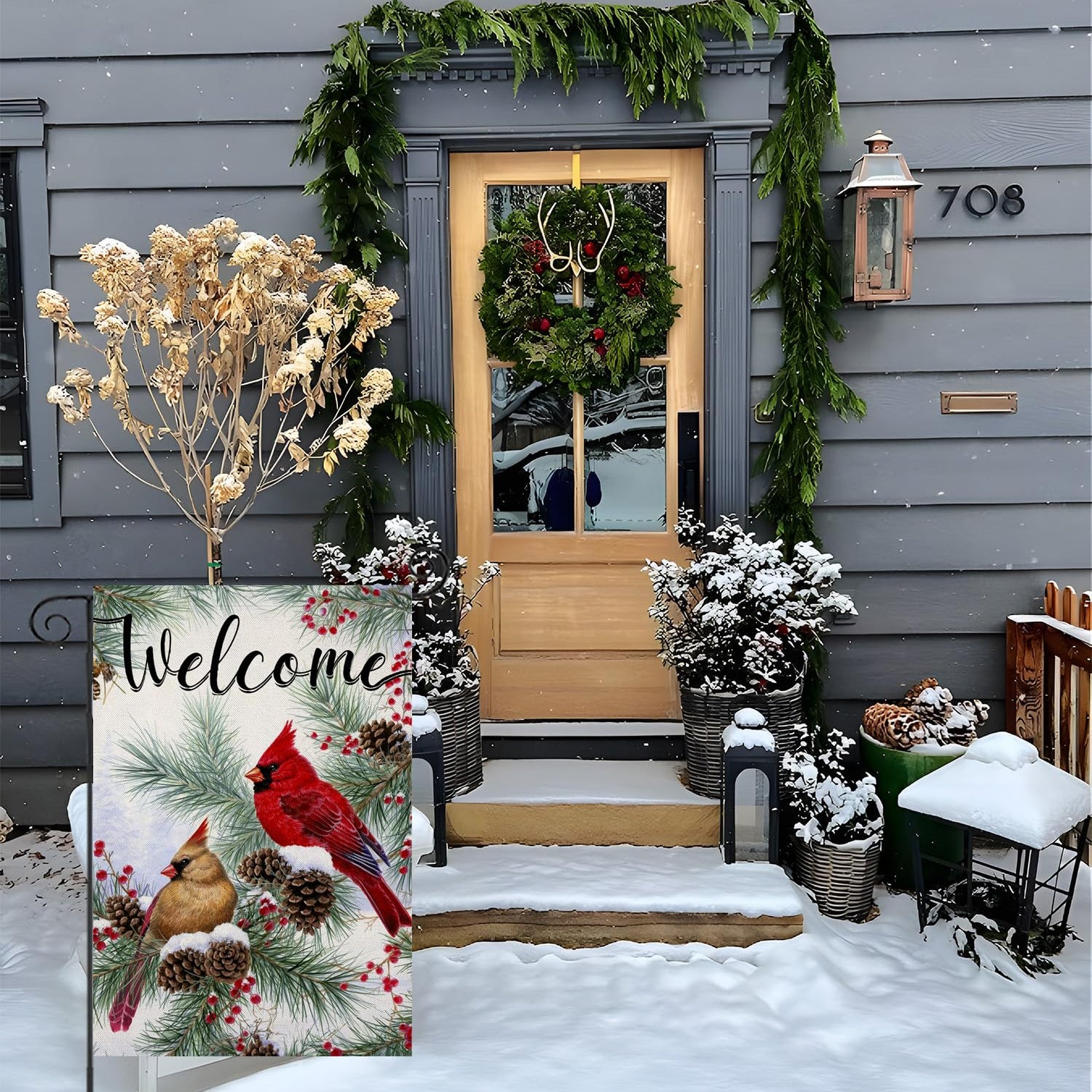 - FLAG SIZE: This welcome christmas Cardinals garden flag is the small, mini garden size measures 12.5" x 18",(FLAG STAND/POLE NOT INCLUDED).