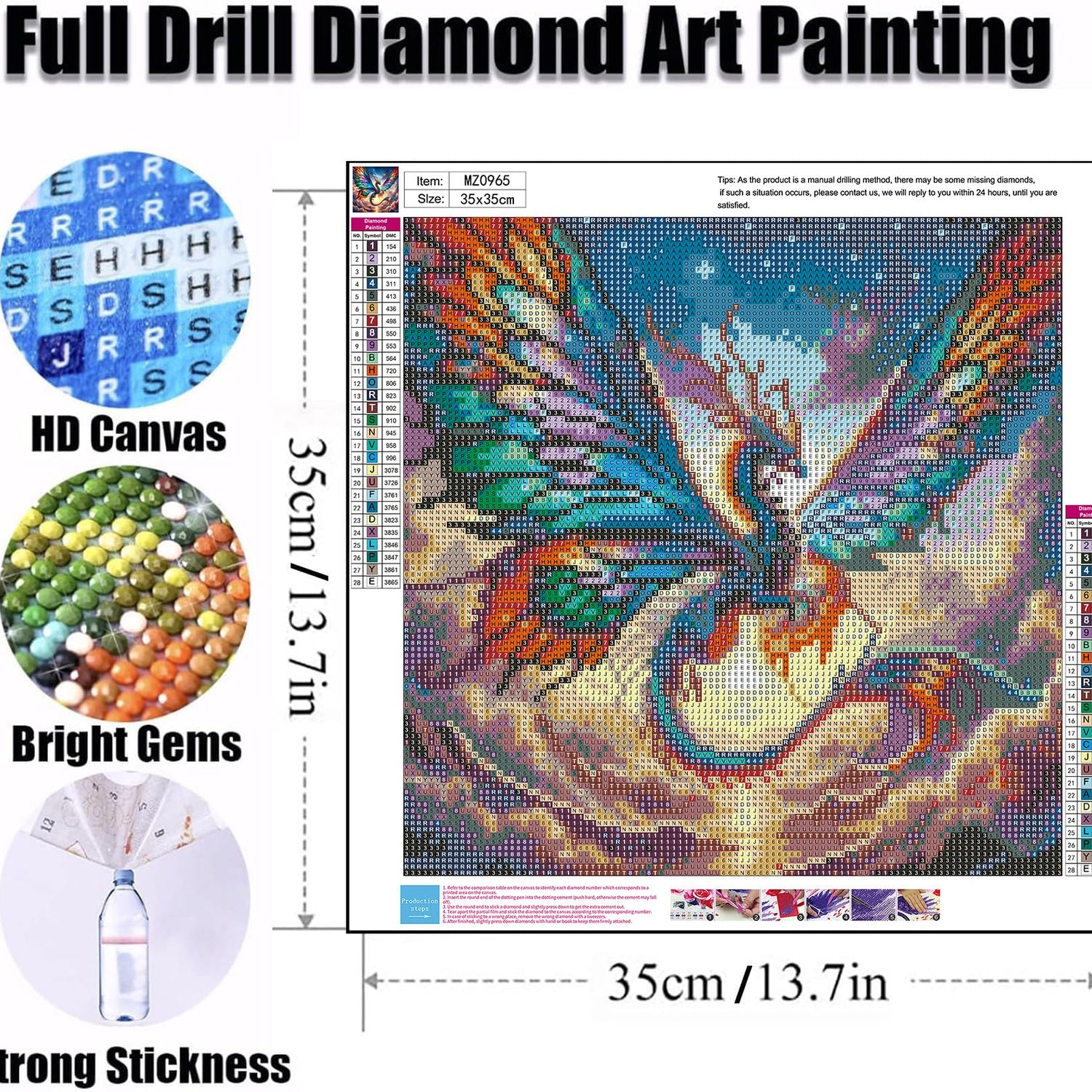 - Dragon Diamond Art Kits: Including 1×high definition painting canvas(14x14inch); color coded rhinestones; 1×point diamond pen; 1×craft tray; 1×clay; 4×self-sealing bags. Note: The frame is not included. Don’t worry about the lack of diamonds. Add 30 percent to each color of diamond, And it is very convenient for user to operation and immediately because each kits contains all diamond painting accessories.