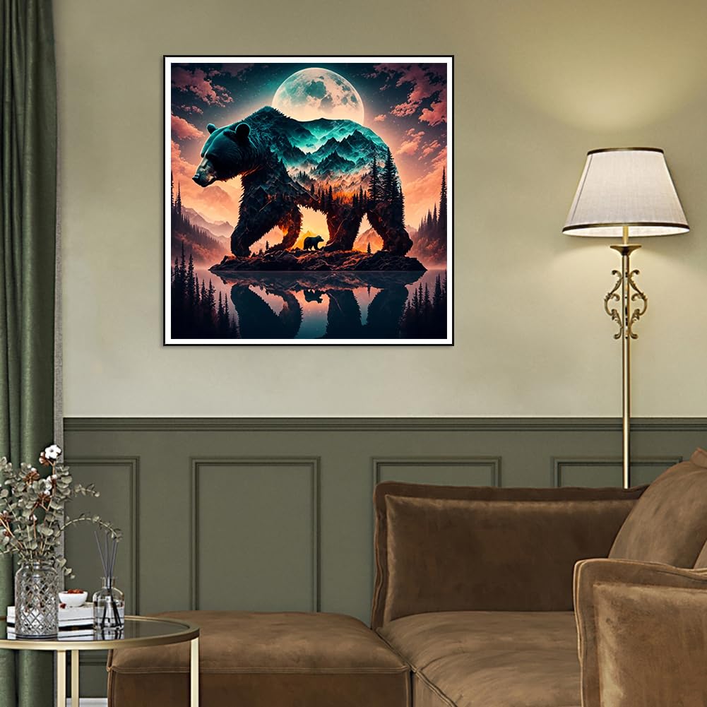 - 【HIGH QUALITY CANVAS】Diamond art Bear Kits use high clear printing oil canvas, non-toxic, tasteless, waterproof, environmental protected, will be never fade, making your room more vivifying and Shining in the light.