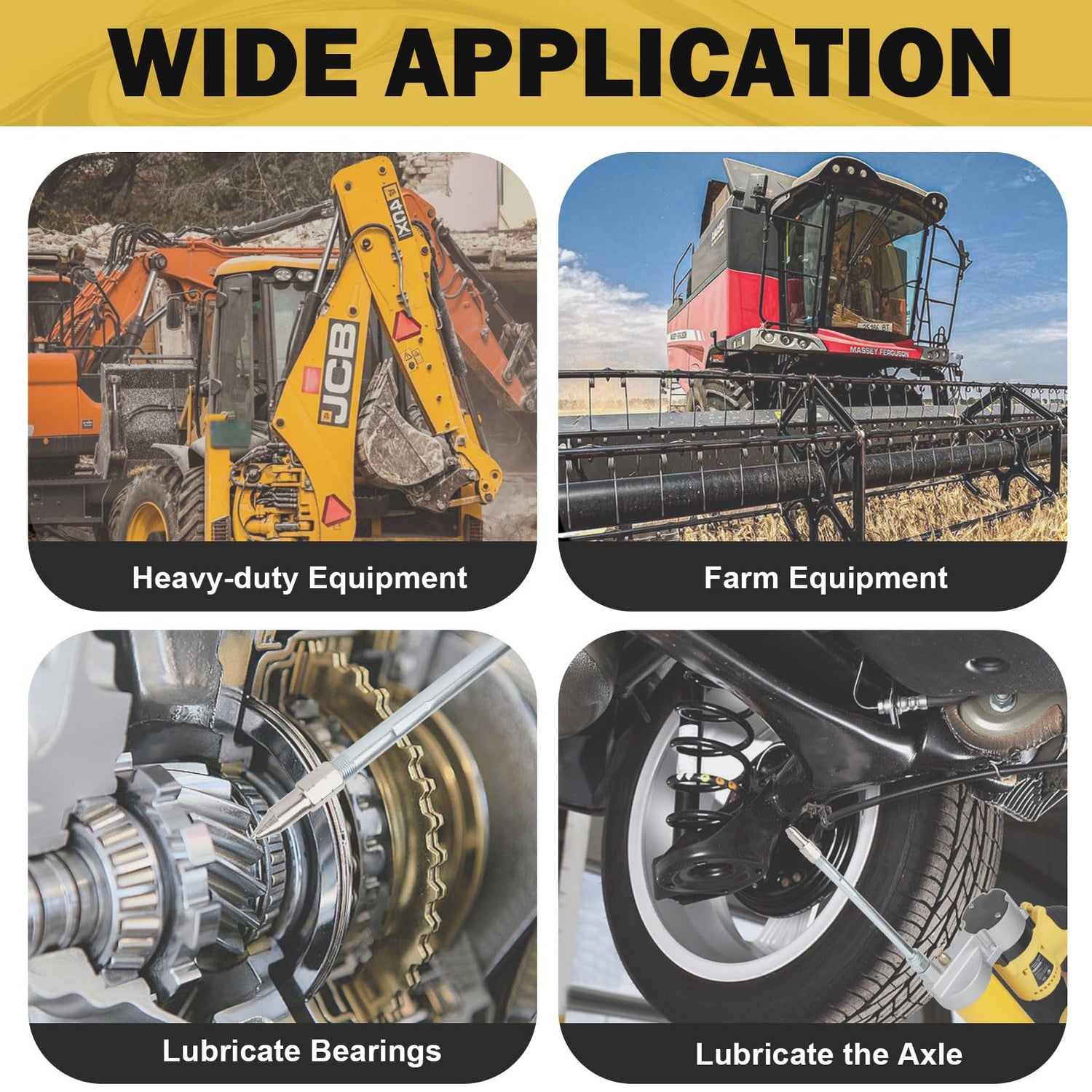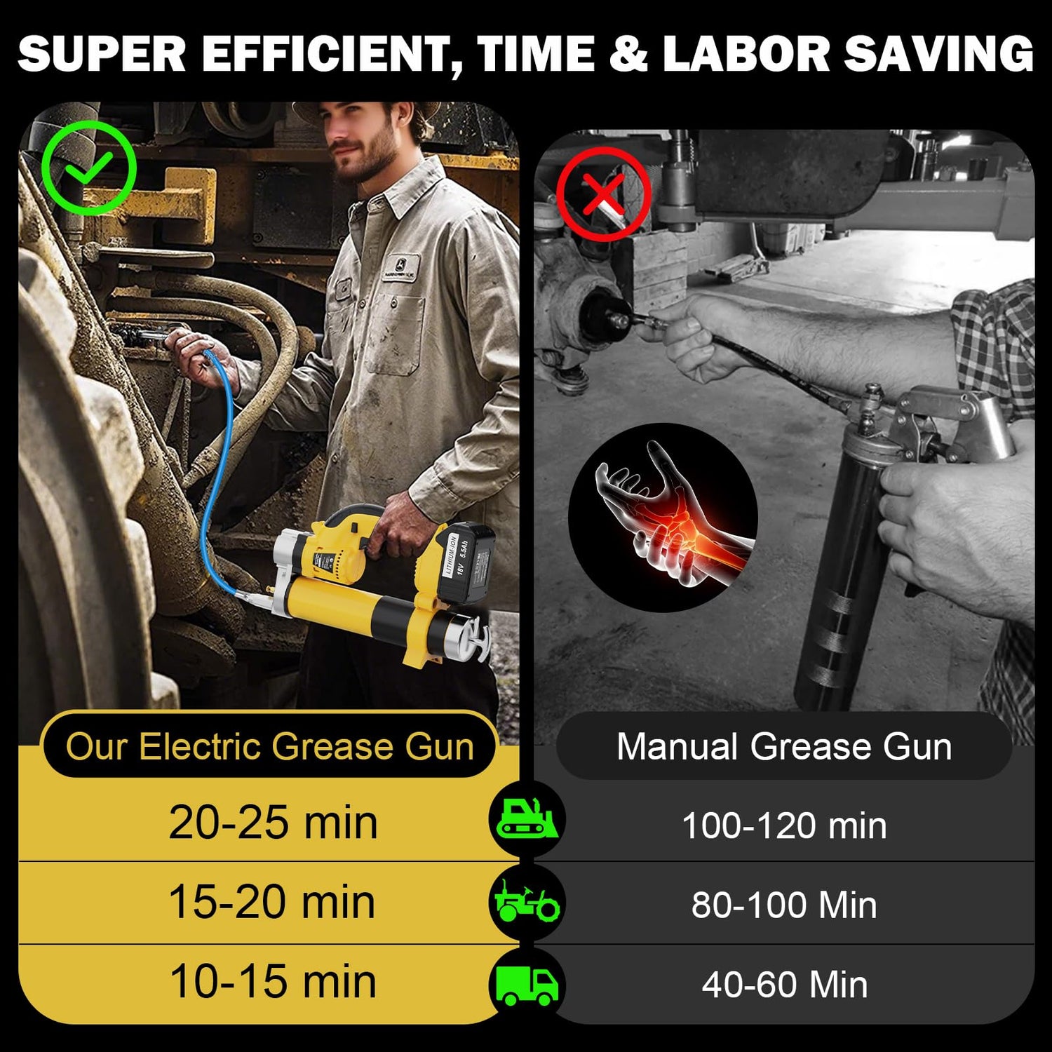 - 【Perfect Gifts】: Cordless grease gun with battery is applicable to the maintenance of heavy-tracked machinery such as lawn mowers and tractors, construction site maintenance, personal and residential lubrication tasks, agricultural farm equipment lubrication, vehicle lubrication and general vehicle maintenance, other basic maintenance, and equipment parts lubrication. Suitable for mechanical enthusiasts, this grease gun is an essential tool for farmers, field mechanics, equipment owners, DIY, car-repair enthusiasts, and equipment maintenance workers. It is the best helper for equipment maintenance and a wonderful gift for workers, husbands, and fathers.