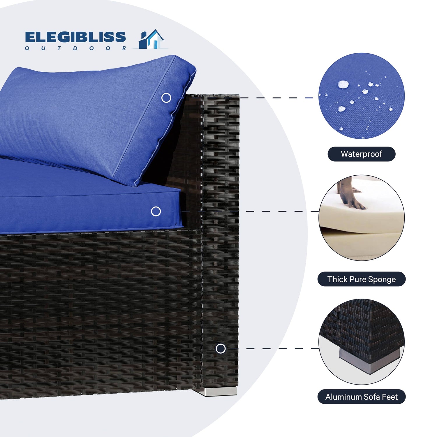 ELEGIBLISS 7 Pieces Patio Furniture Set - Outdoor Sectional Wicker Rattan Furniture with Cushion and Glass Table Patio Conversation Sets for Porch Poolside Backyard Outdoor Sofa Set Modular Sofa