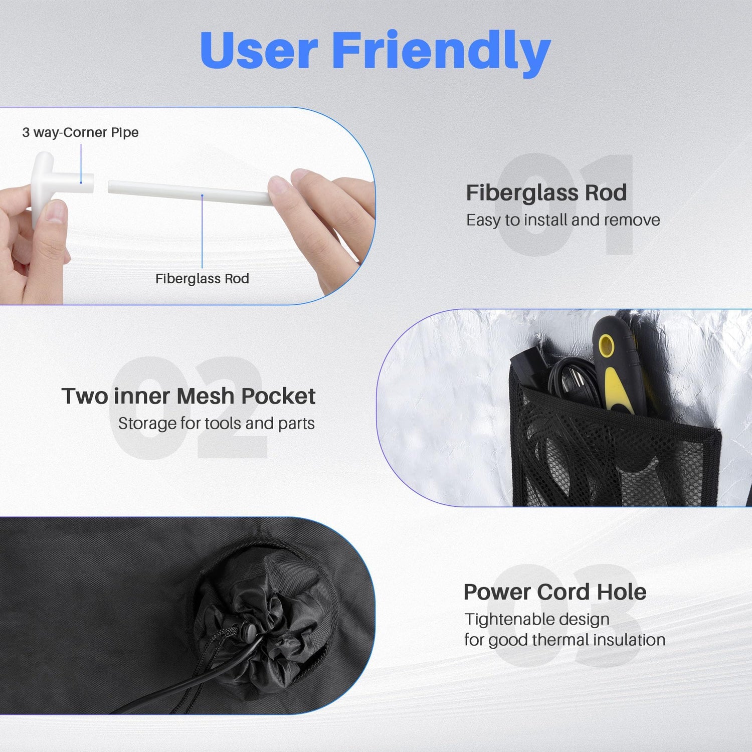 - ENHANCED SAFETY: The enclosure made of aluminum foil Oxford cloth, flame-retardant, fireproof and excellent heat-resistant, absolutely safe and durable